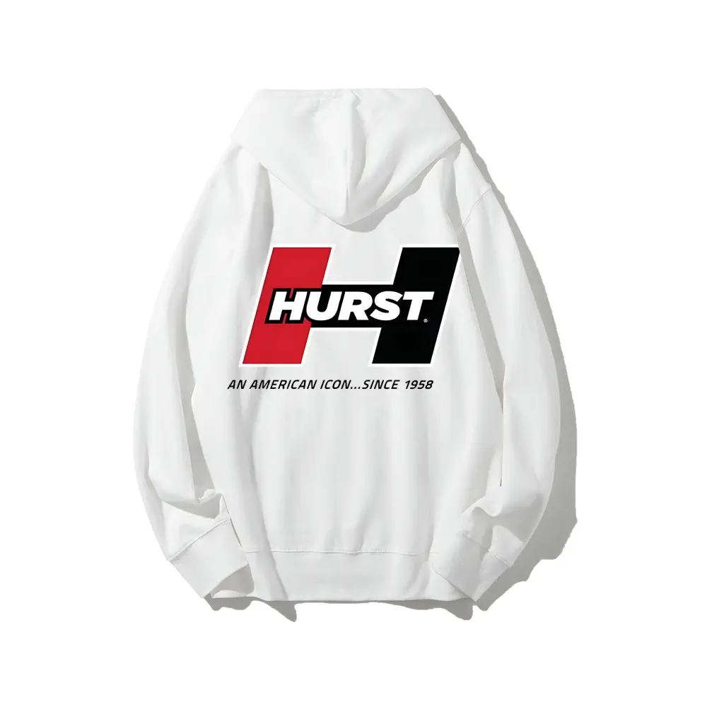 5. Hurst Shifters Hoodie, Classic Red and Black Block Logo Graphic – Hurst Iconic Muscle Car Apparel, Vintage Racing Graphic Pullover for Gearheads, Car Meet Outfit Gift