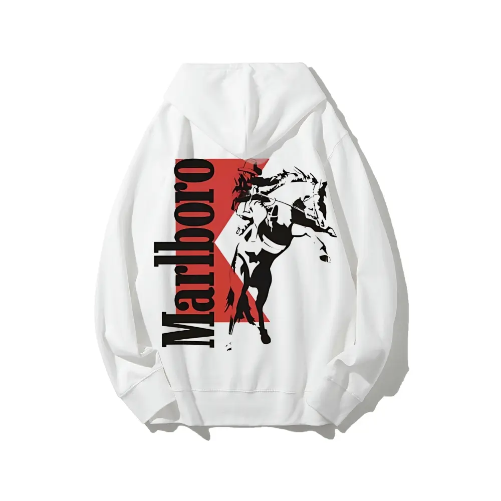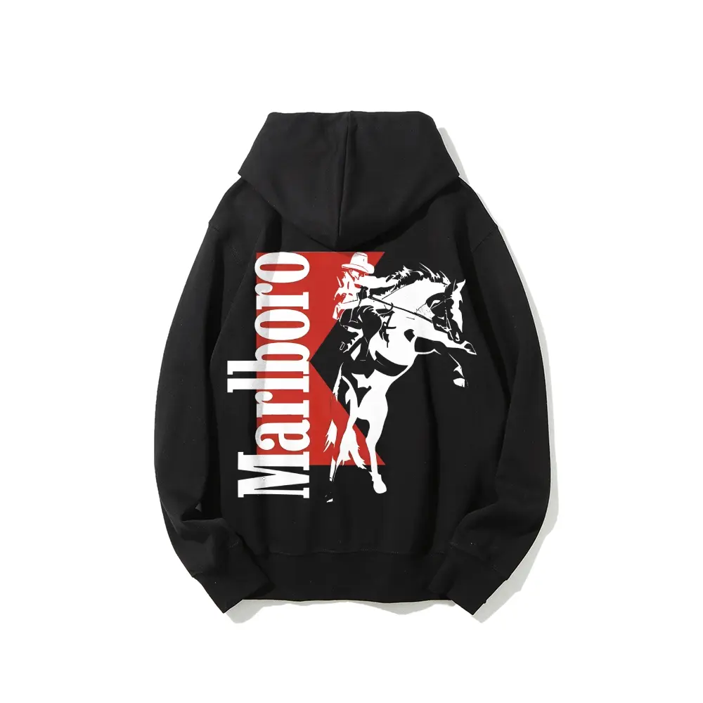 [Made in US] Vintage Marlboro Cowboy Hoodie, Boho Western Style, Unisex Graphic Pullover, Daily Comfort Cotton Menswear, Perfect Gift for Men