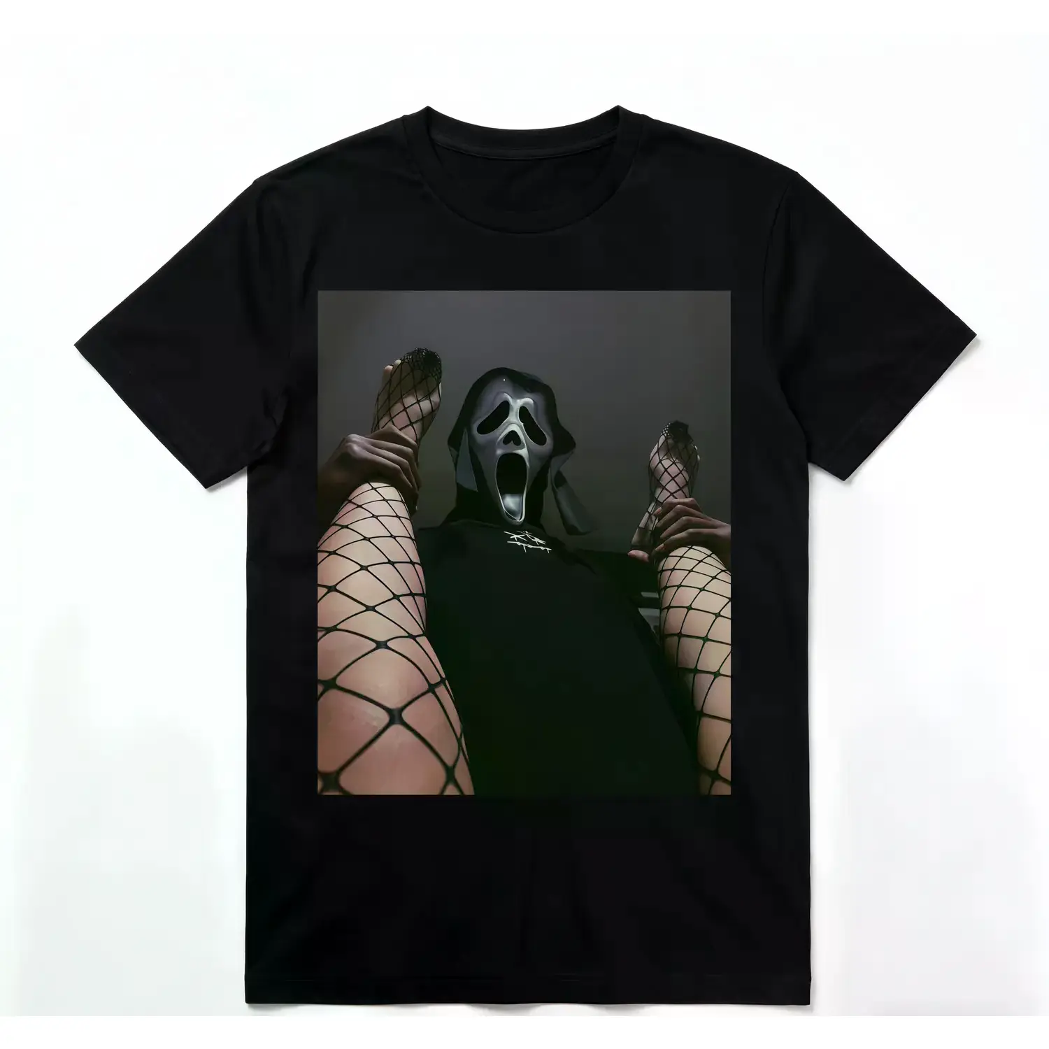 Dark Horror Streetwear Oversized Graphic Tee Unisex Black 100% Cotton Bold Mask Print for Halloween Festivals or Everyday Grunge Soft Limited Drop Casual Crewneck Tshirt shirts men graphic t-shirts