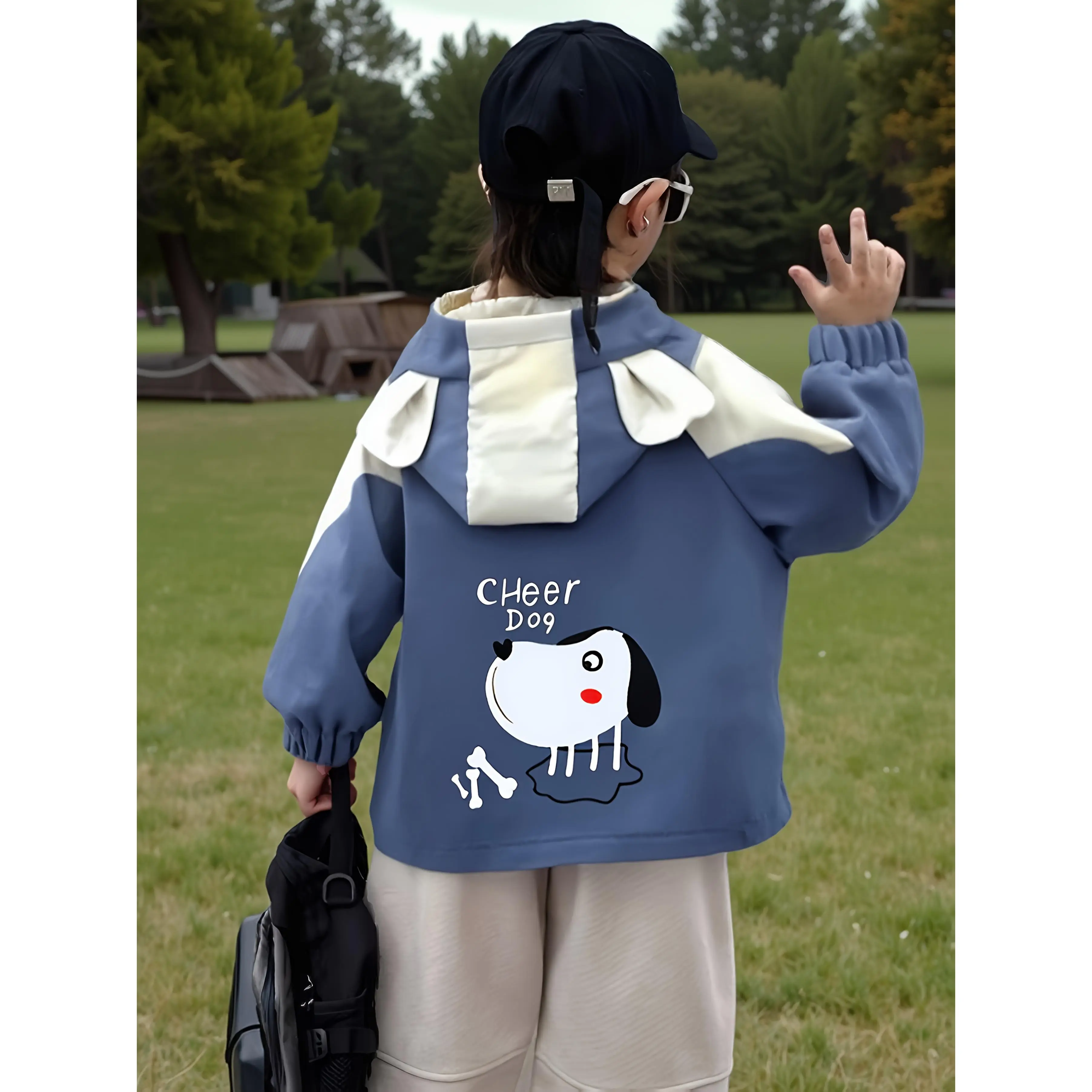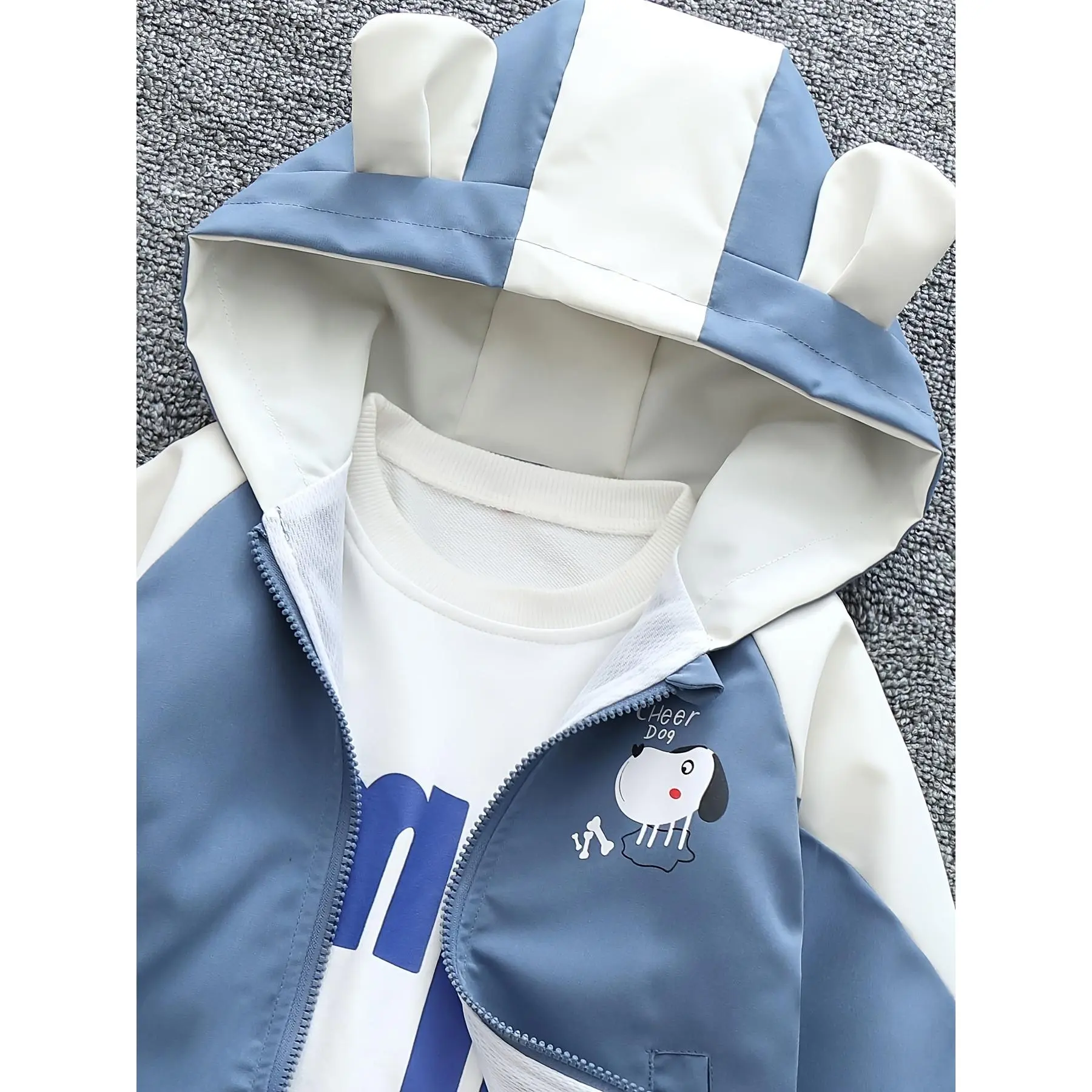 NewBoys' Spring/Autumn Jacket, Cute Cartoon Animal Print Hooded Windbreaker with Ears for Toddlers and Young Children, Casual Loose-Fit Jacket