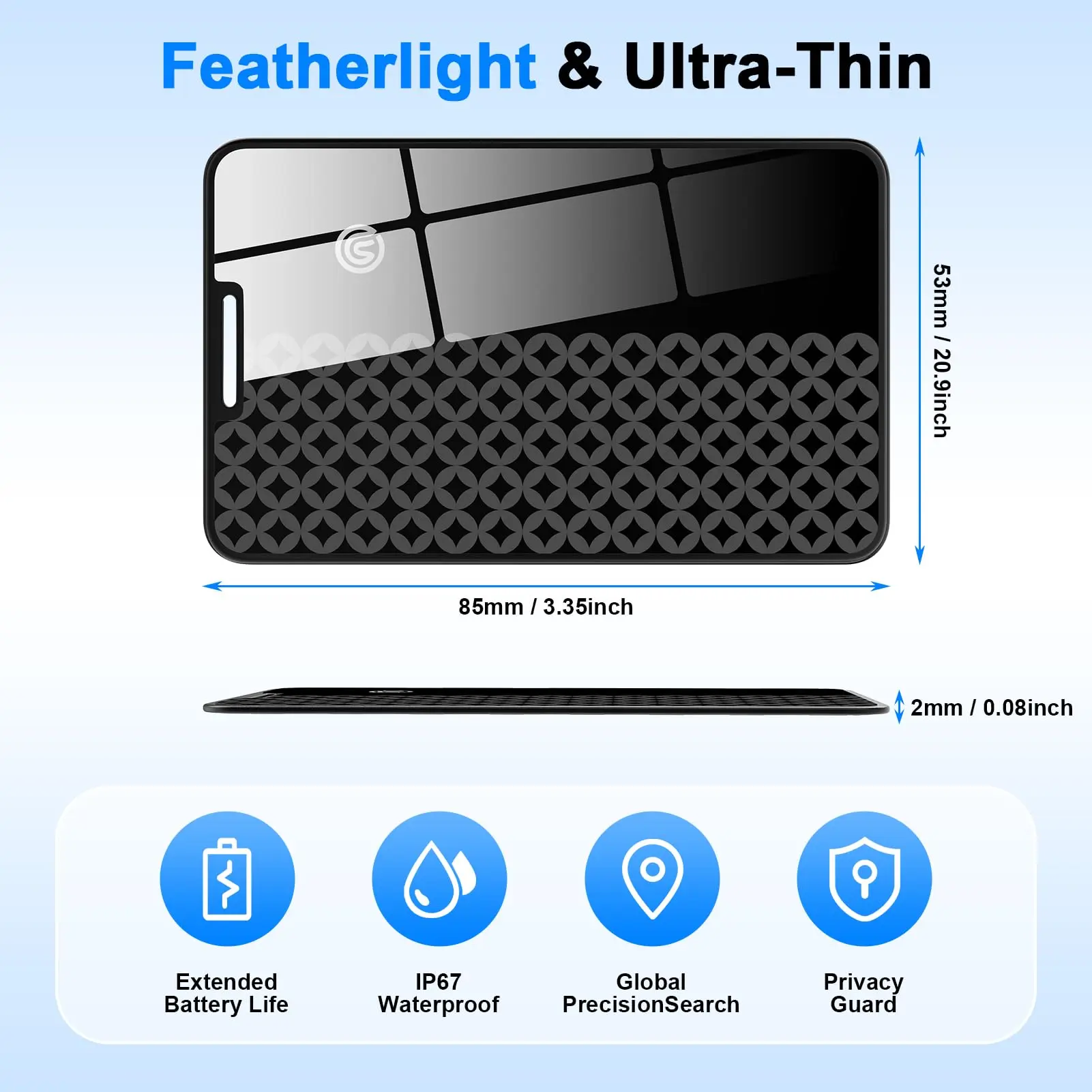 Ultra-Thin with PVC Finish: At just 0.08 inches, the wallet tracker fits perfectly in slim wallets without adding bulk. The PVC surface radiates a high-end texture, IP68 water-resistant to handle daily splashes, making it a perfect gift
