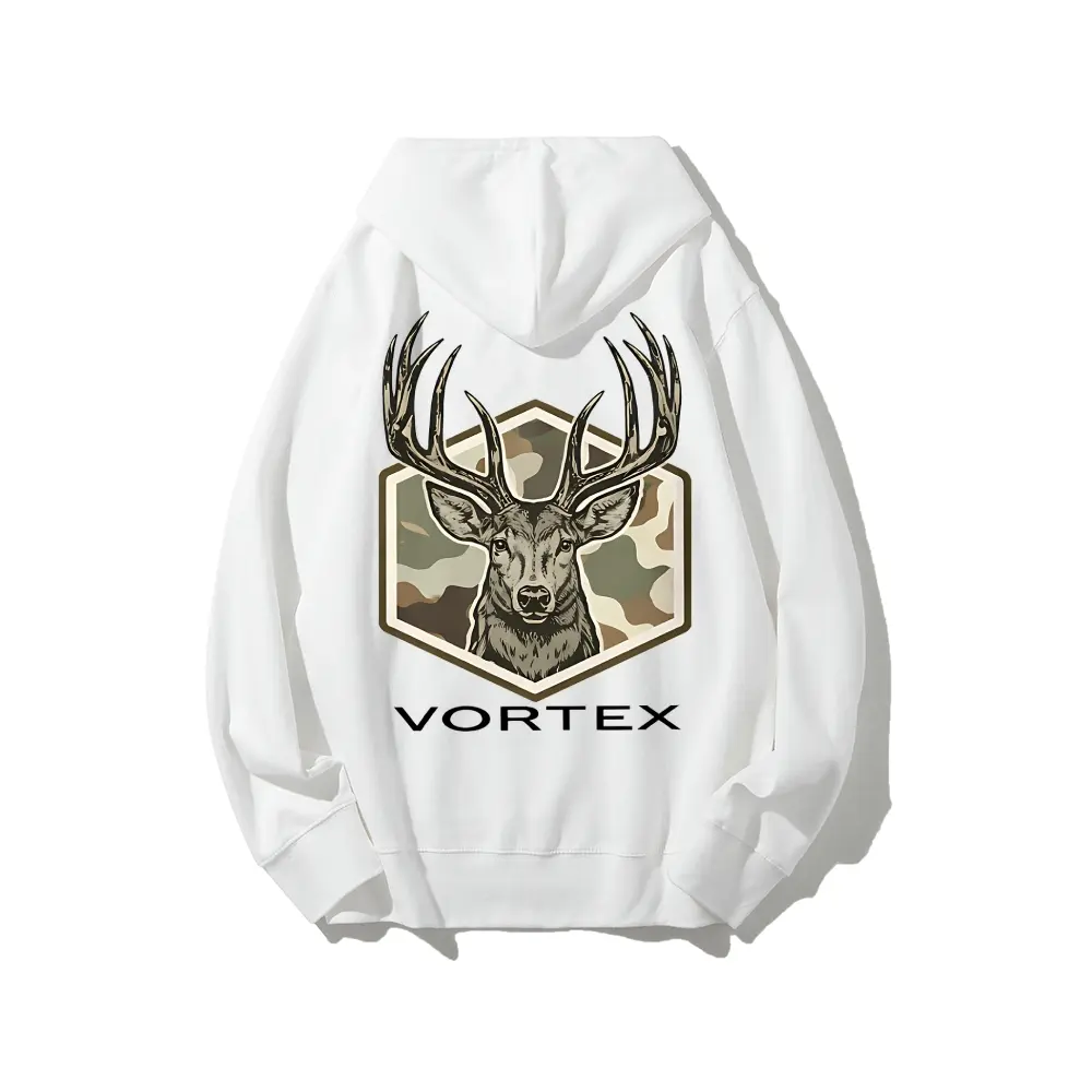 Deer Hoodie – Camo Buck Head Graphic Hunting Sweatshirt, Outdoor Wildlife Pullover for Hunters & Nature Lovers Menswear Tops Casual Crewneck