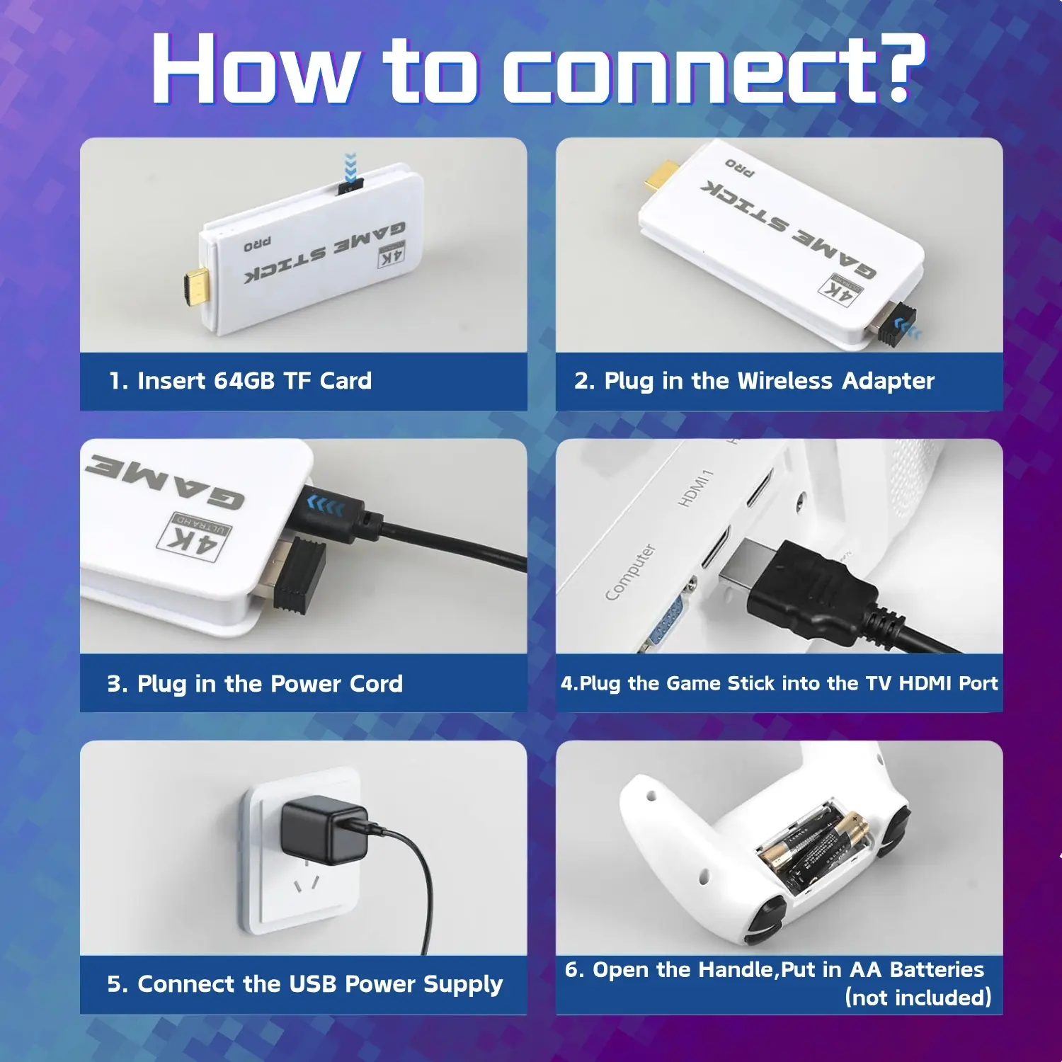 The console comes with a 64GB SD card, ensuring ample space for your game library. It's compatible with various emulators, offering a vast selection of games. The HDMI connection allows seamless integration with your TV, enhancing your gaming experience.