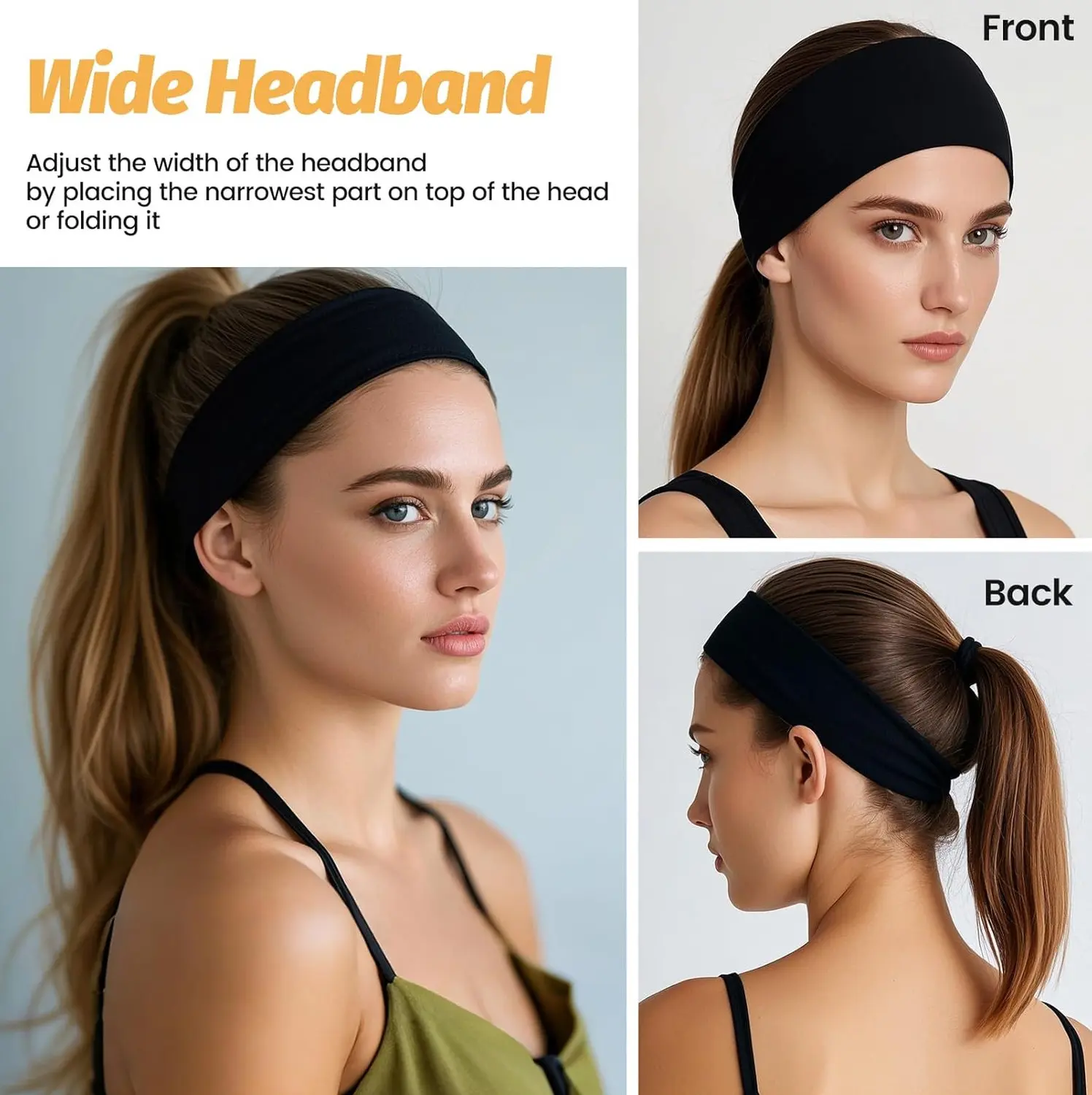 6 Pack Wide Elastic Headbands for Women – Non Slip Stretchy Hair Bands Soft Sweatbands for Workout Yoga Makeup Daily Use