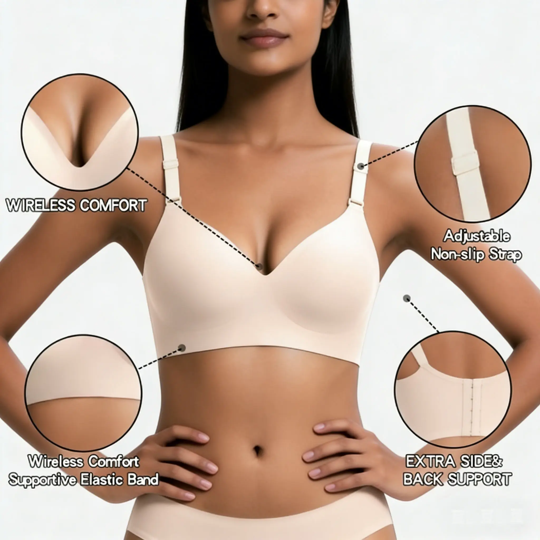 This bra is ideal for all seasons due to its seamlessdesign. Plus,this unlined wireless bra gives you a naturashape while remaining invisible under clothing.