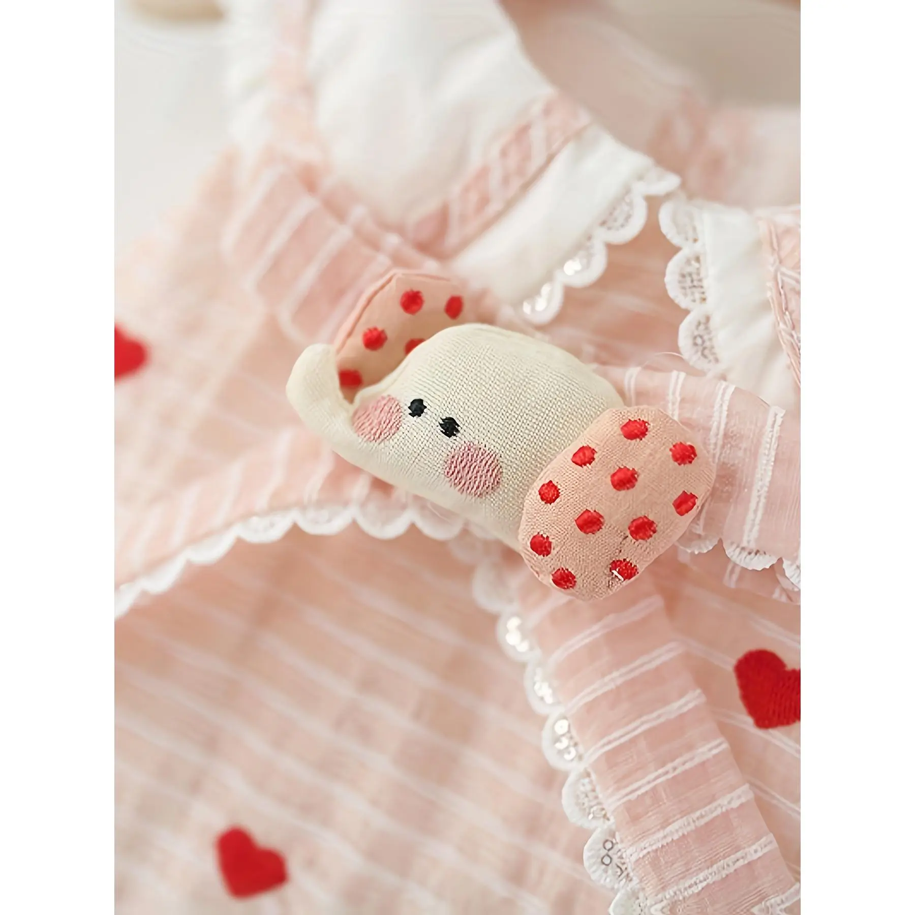 NewSummer Pink Striped Cute Baby Girl Dress Turn-Collar Sleeveless Sweet Heart Dress Toddler 0-4 Years Old Cartoon Elephant Casual Children's Clothing