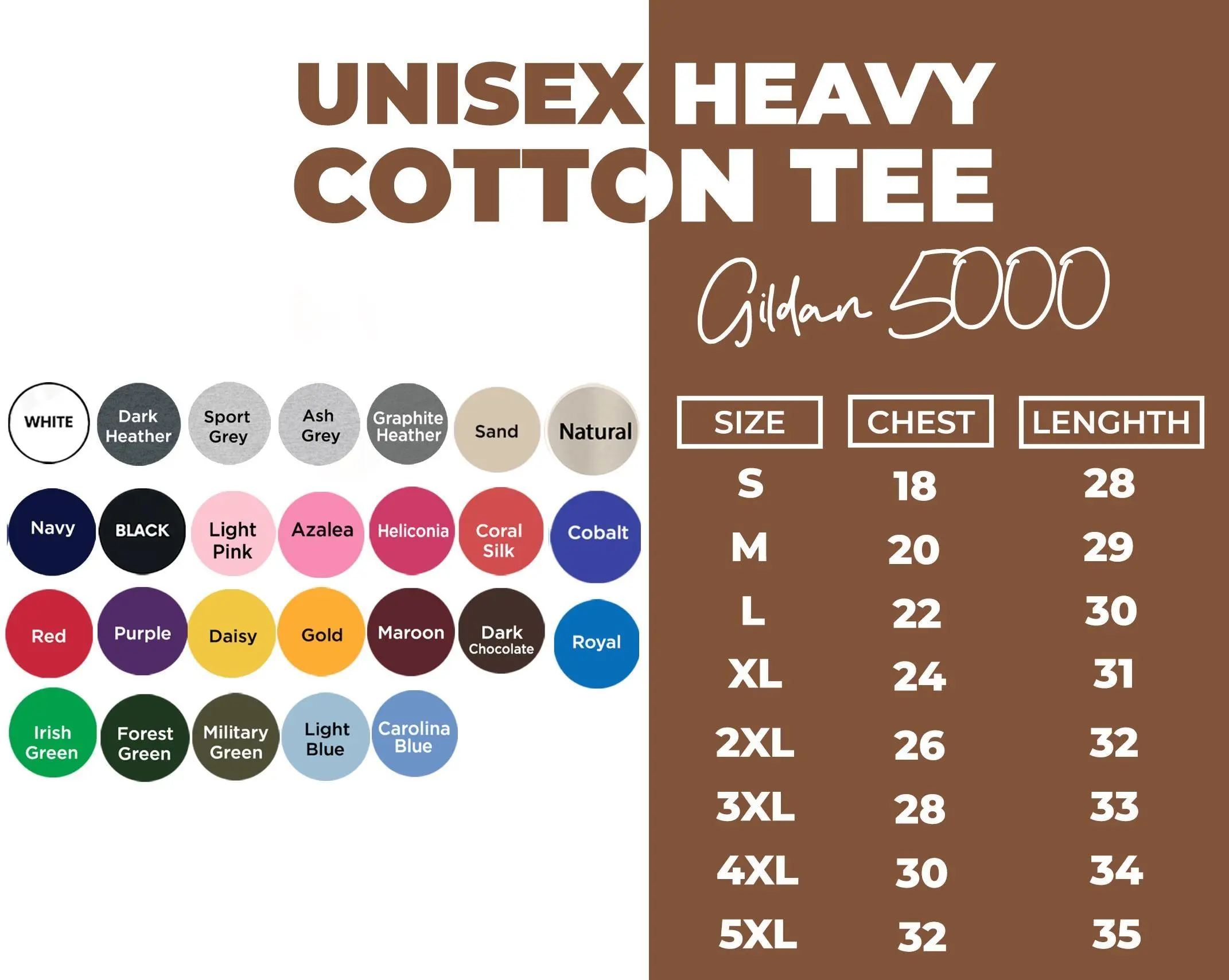 UNISEX BASIC T-SHIRT: The Gildan 5000 gives a rich and structured look to the classic t-shirt, and works great for layered streetwear outfits. Thanks to its heavyweight fabric, it maintains sharp lines along the edges and lasts a long time. Add your design, and surprise your customers with a new, trendy addition to your t-shirt collection.