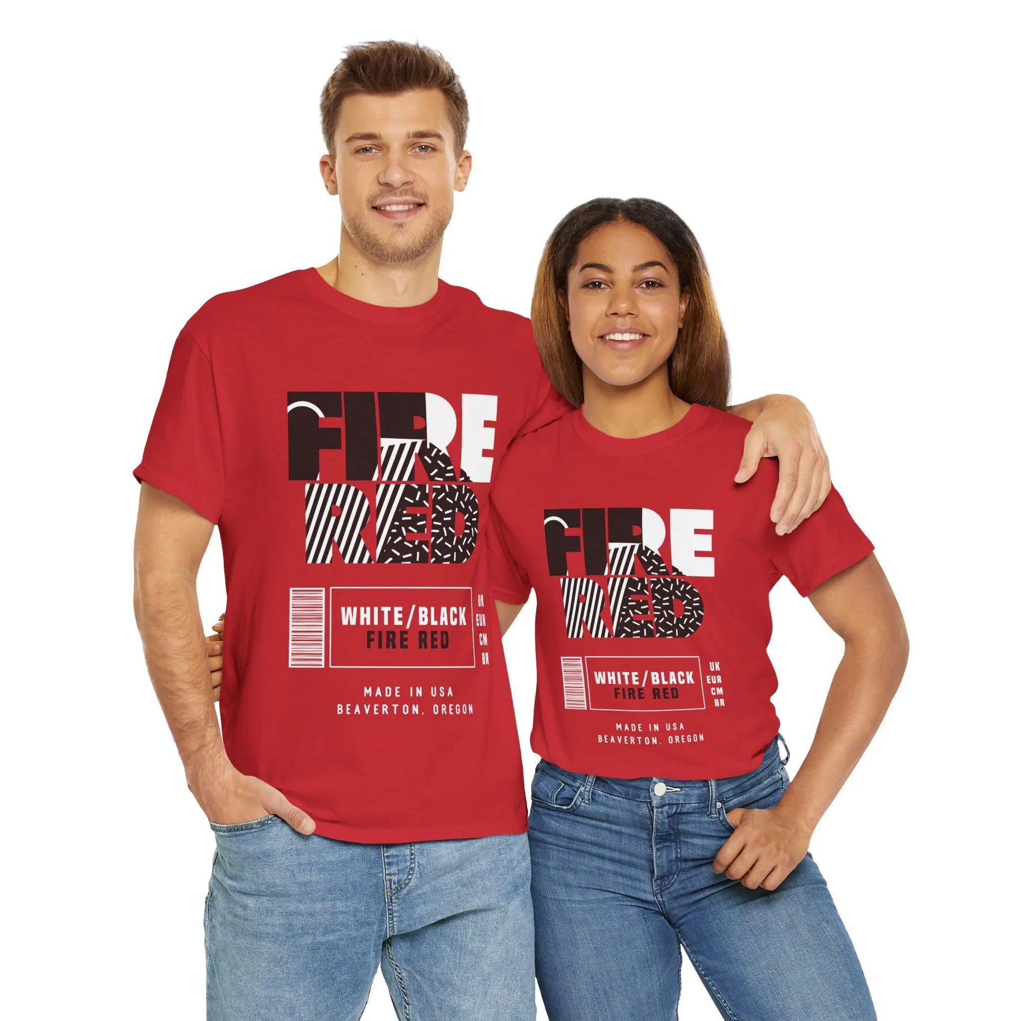 Retro Label Jordan 5 Fire Red Matching Sneaker Tee Shirt Red