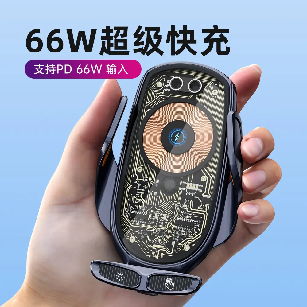 New 66W Wireless Super Fast Charging Car Charger Transparent Punk Style Multifunctional Smartphone Holder