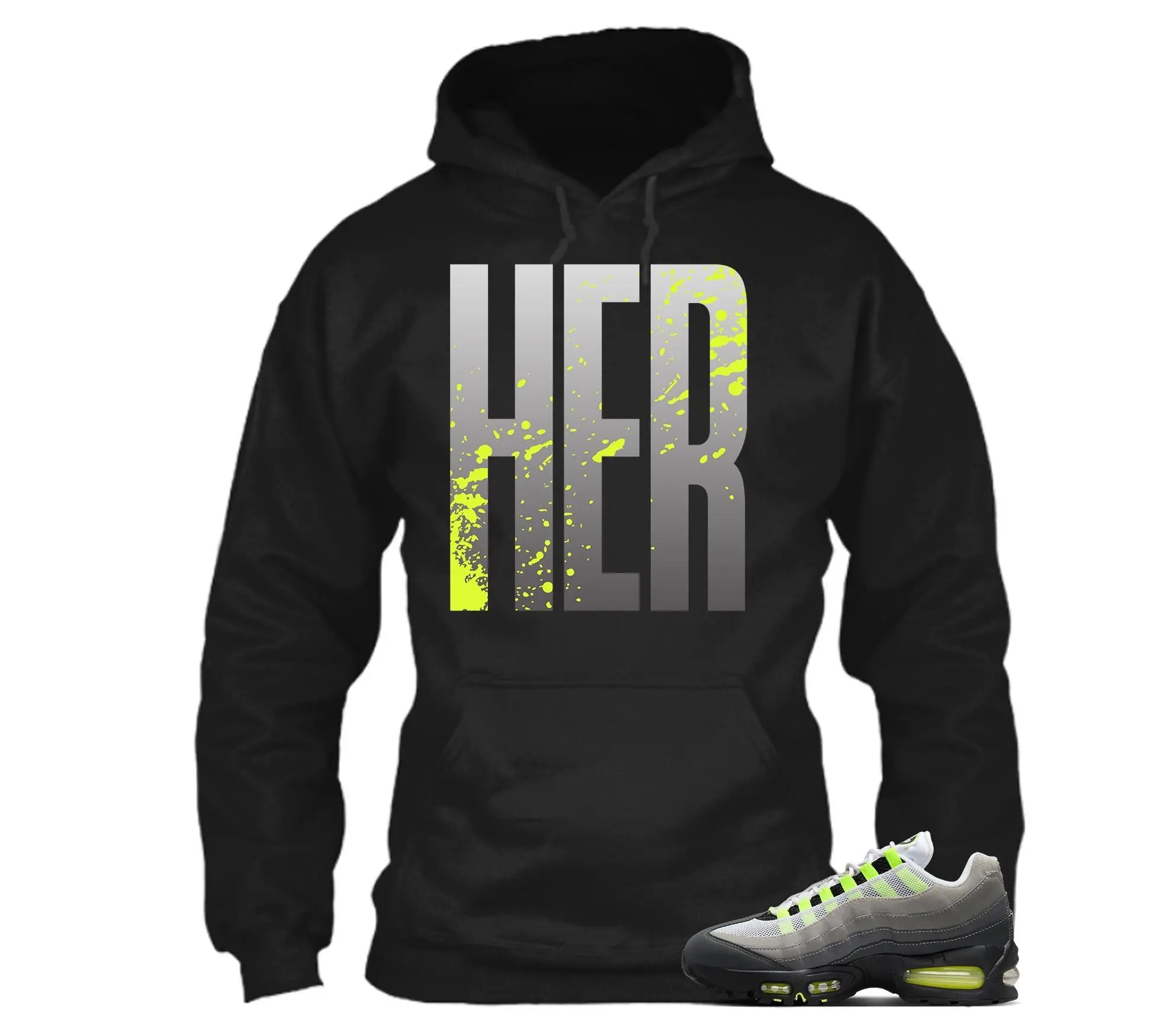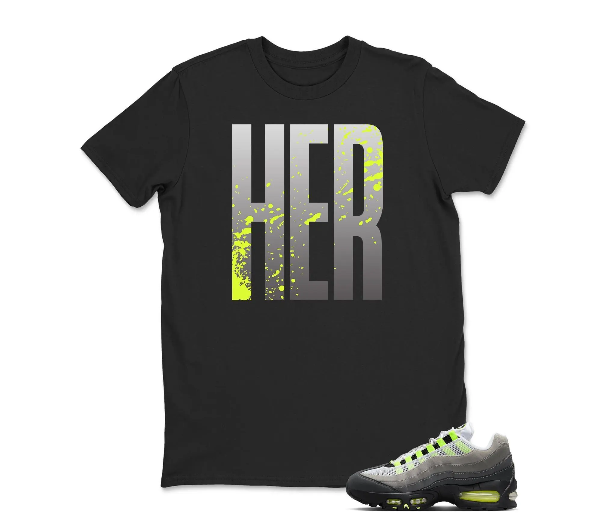 Air Max 95 Big Bubble Neon Yellow Black Cool Grey 2026 OG T Shirt Match HER, Air Max 95 Big Bubble Matching Sneaker Hoodie, Sweatshirt