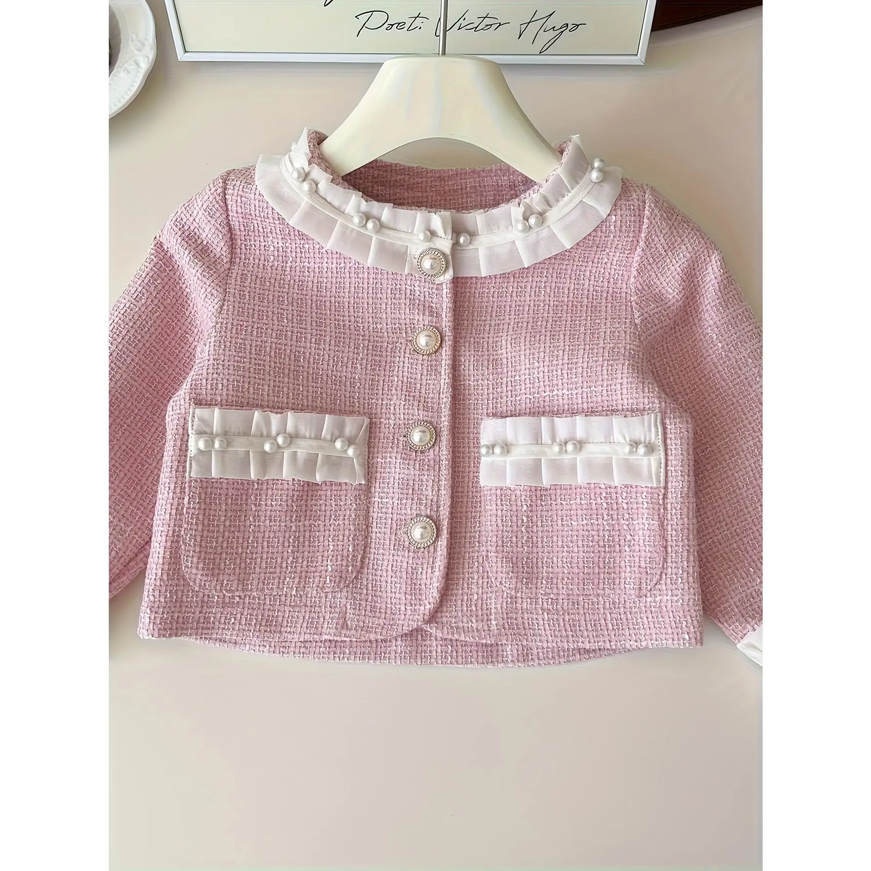 Material: PolyesterTops Composition: 100% PolyesterBottoms Composition: 100% PolyesterDetails: ButtonPattern: Solid colorApplicable People: ChildrenSheer: NoFabric: Non-StretchType: BodyconSeason: AllOperation Instruction: Hand wash or professional dry cleanStyle: ElegantFit Type: RegularApplicable Age Group: 12 and underWeaving Method: WovenItem ID: WQ4596702Origin: Zhejiang,China