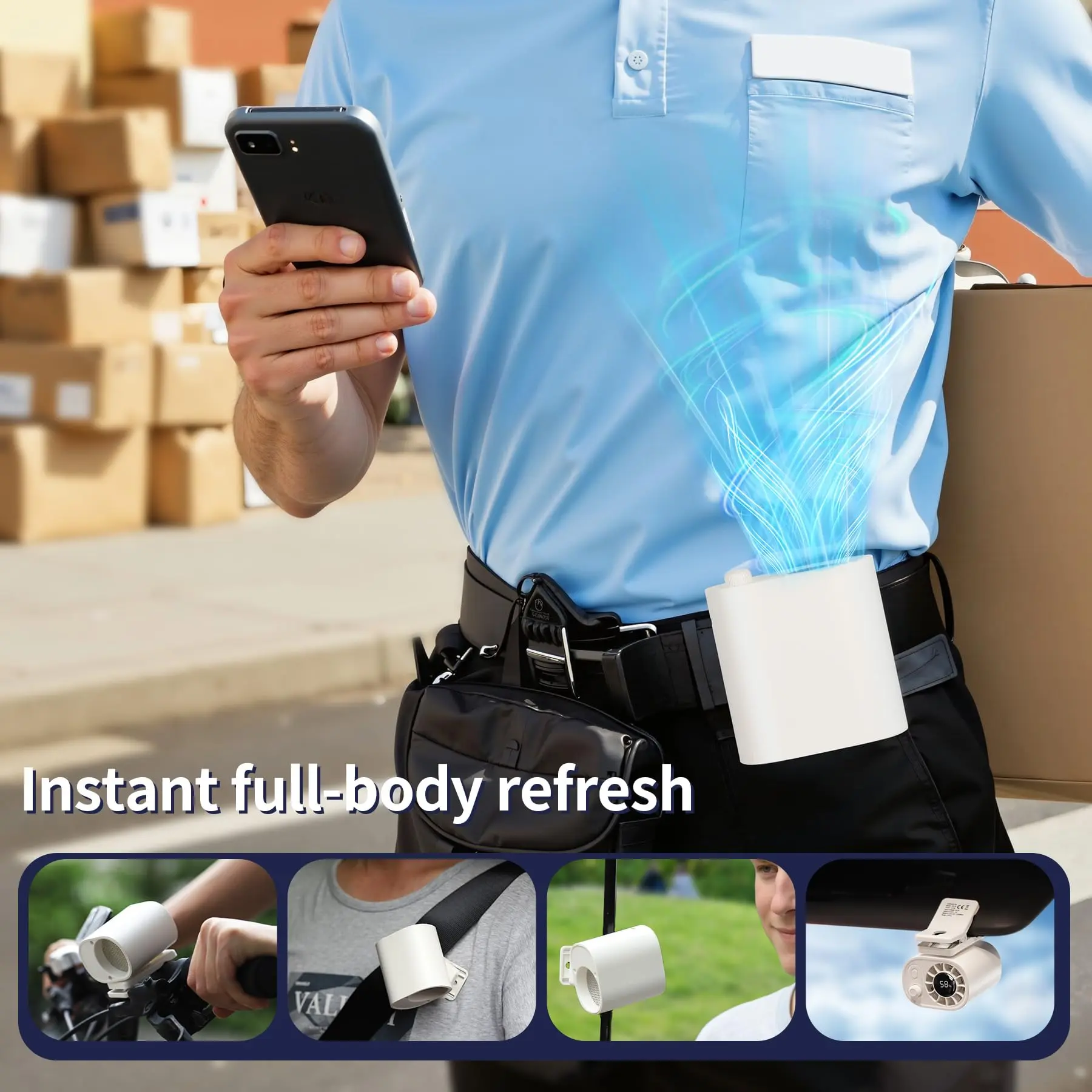 ·【Other instructions】Our product comes with one belt clip fan (2.44 * 1.77 * 2.56 inches, 0.29 pounds), one instruction manual and one Type-C data cable. We provide 24-hour online after-sales service