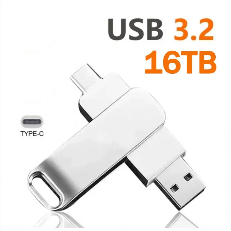 16TB Flash Drive Usb 3.2 Super High Speed Metal Transfer U Disk Pen Drive Waterproof Type C Disk SSD USB Drive Disk