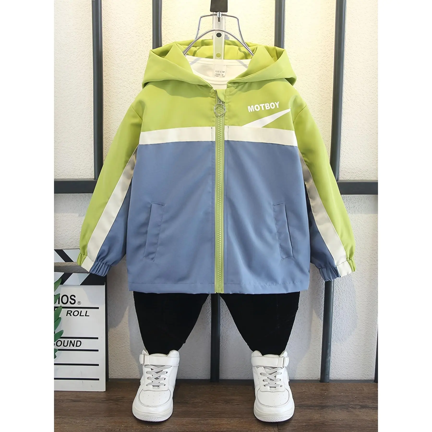 NewBoys' Casual Hooded Windbreaker Jacket - Bright Orange & Teal with MOTBOY Lettering, Loose Fit Full-Zip Spring/Fall Outerwear, Durable Polyester for Active Youngsters, Youngsters Casual Jacket| Casual Loose Fit| Fullzip Closure