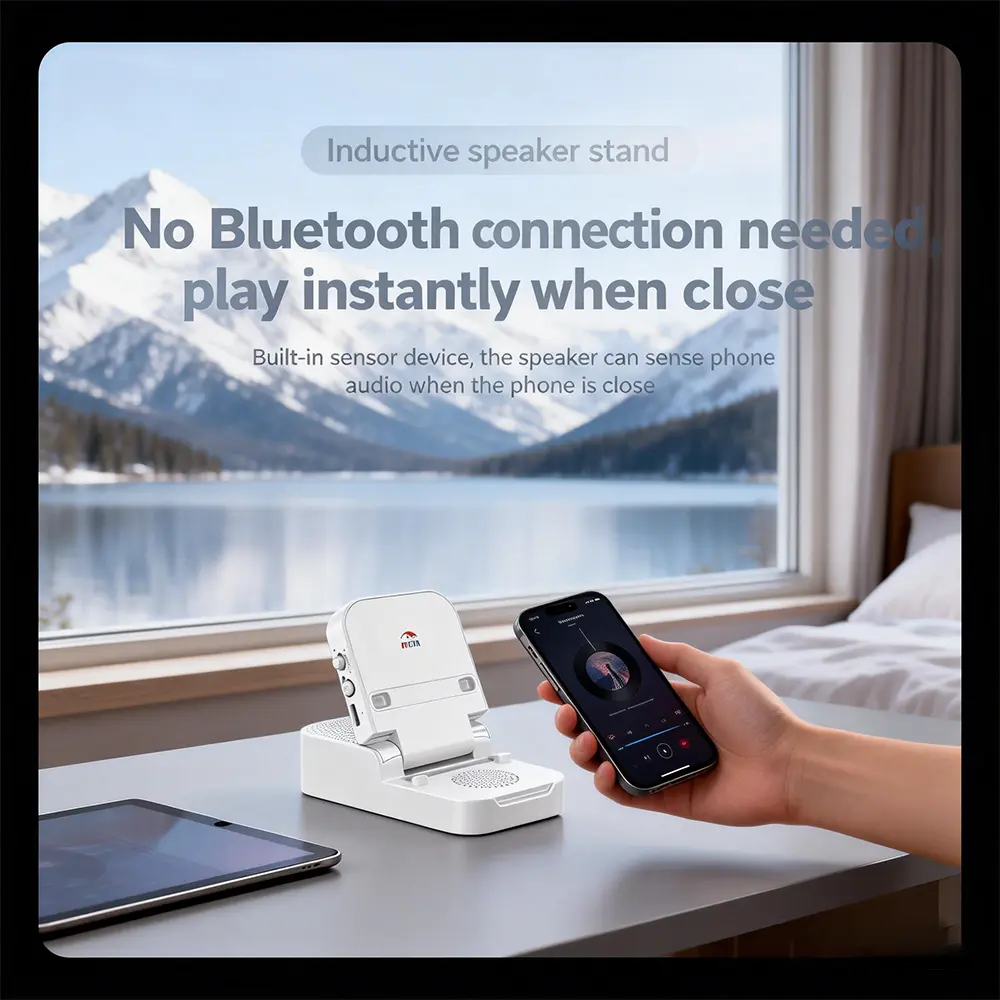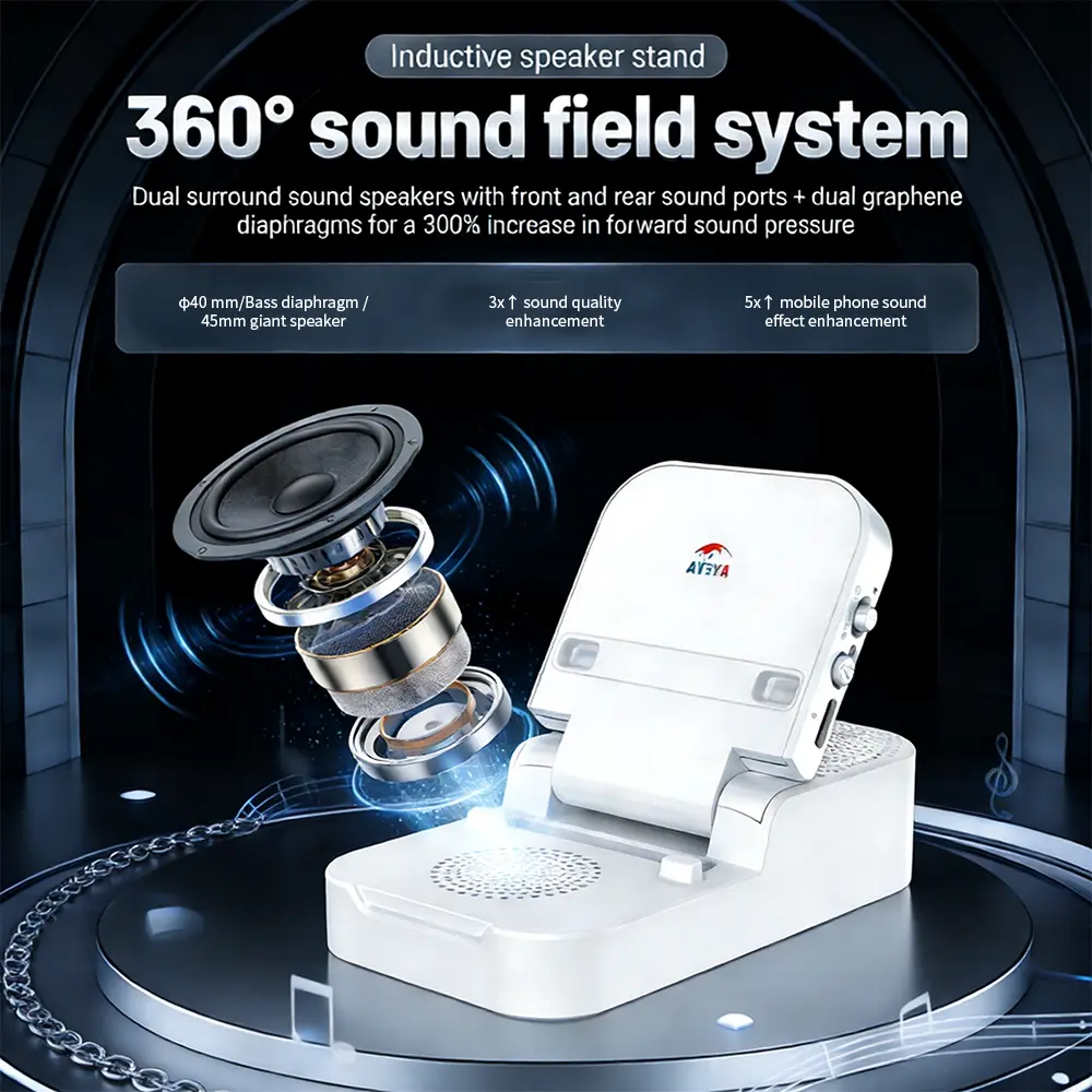 ATEYA Portable Induction speaker | Optional Bluetooth connectivity | Portable Mobile phone holder | Supports connecting two devices simultaneously | Four-in-one speaker.Not compatible with the iPhone 17 series for now.