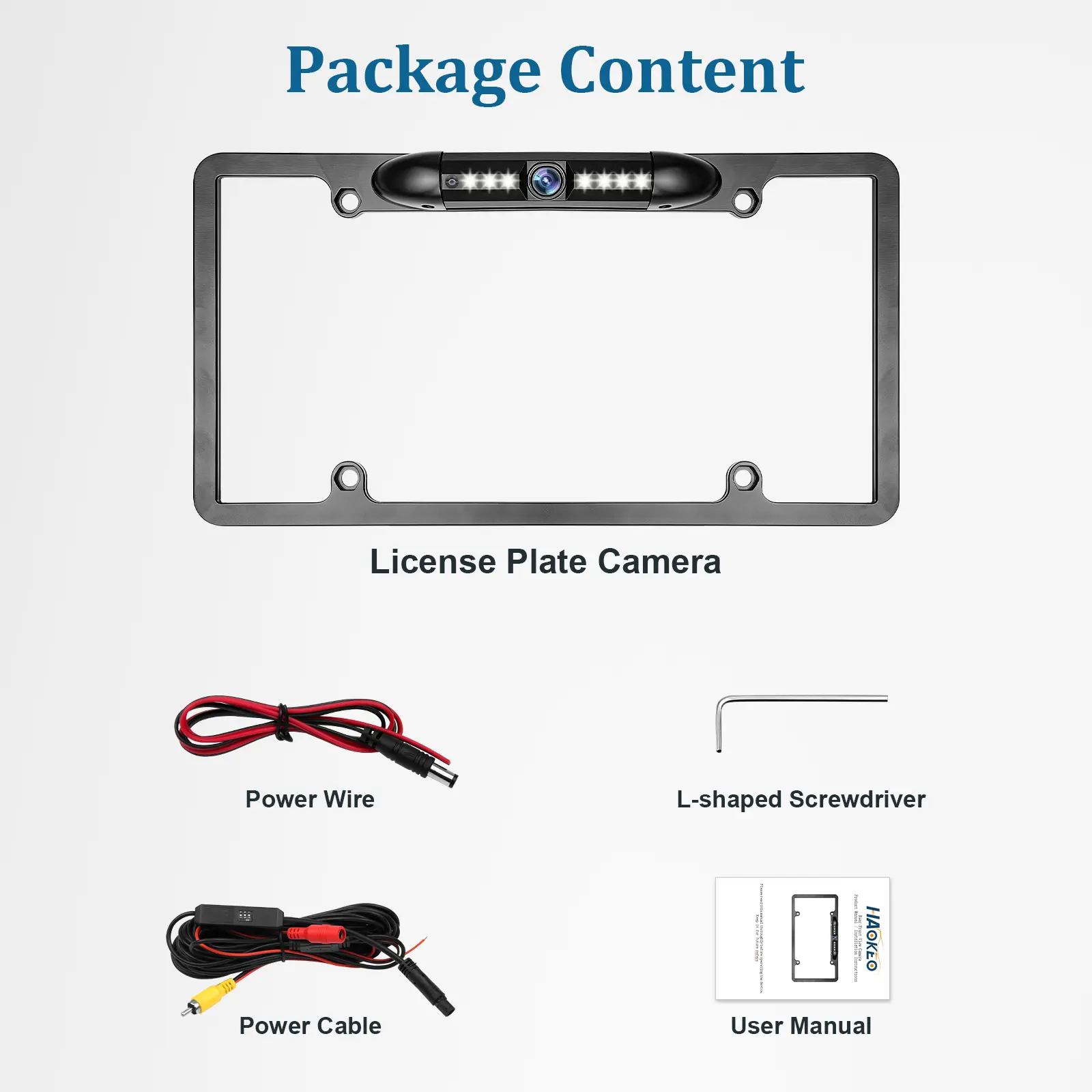·License Plate Frame Backup Camera: Perfect fit for most vehicles that use a standard US license plate. It is a plate frame mounted on the license plate, which holds the license plate securely without blocking the license plate info. Before buying, pls check your license plate size first.