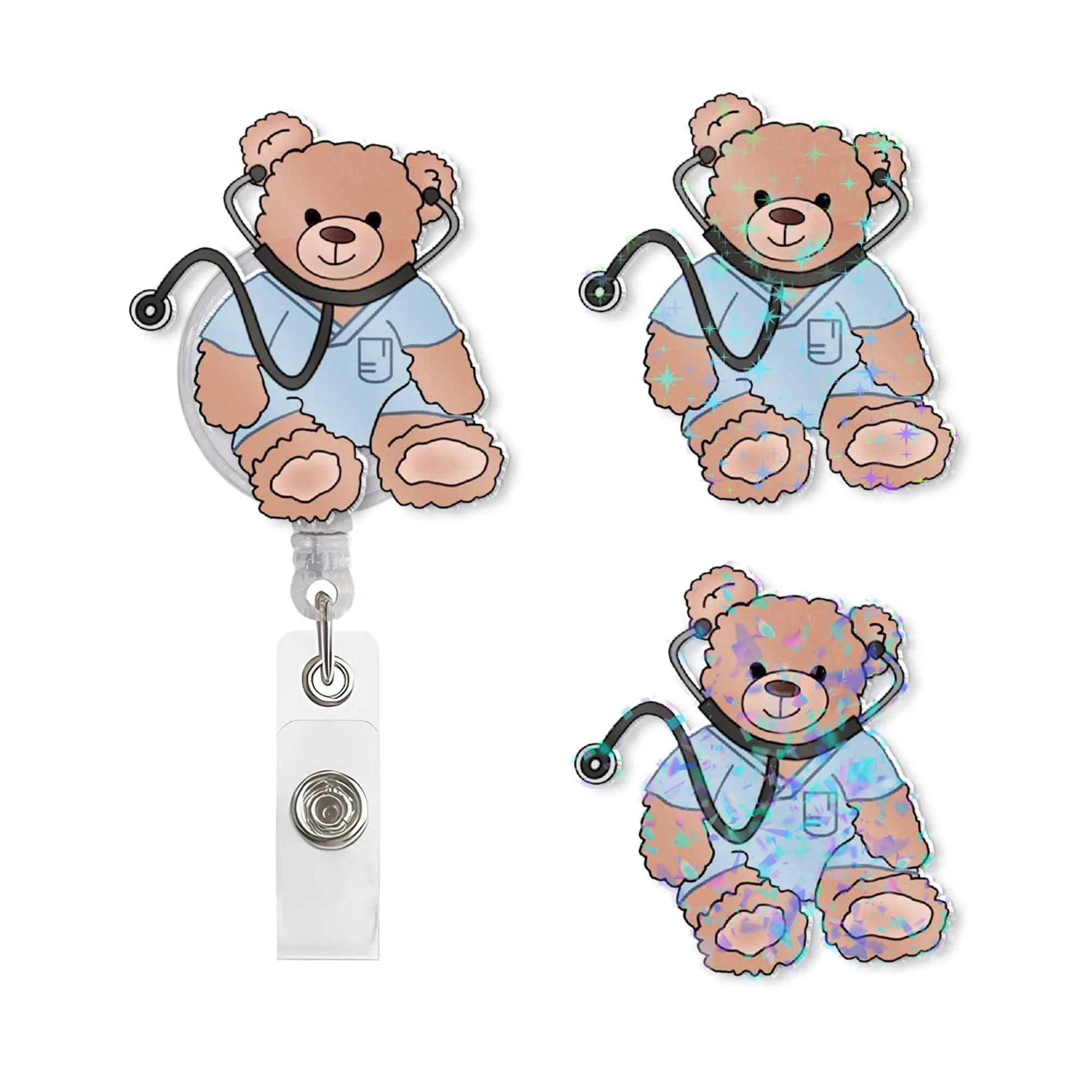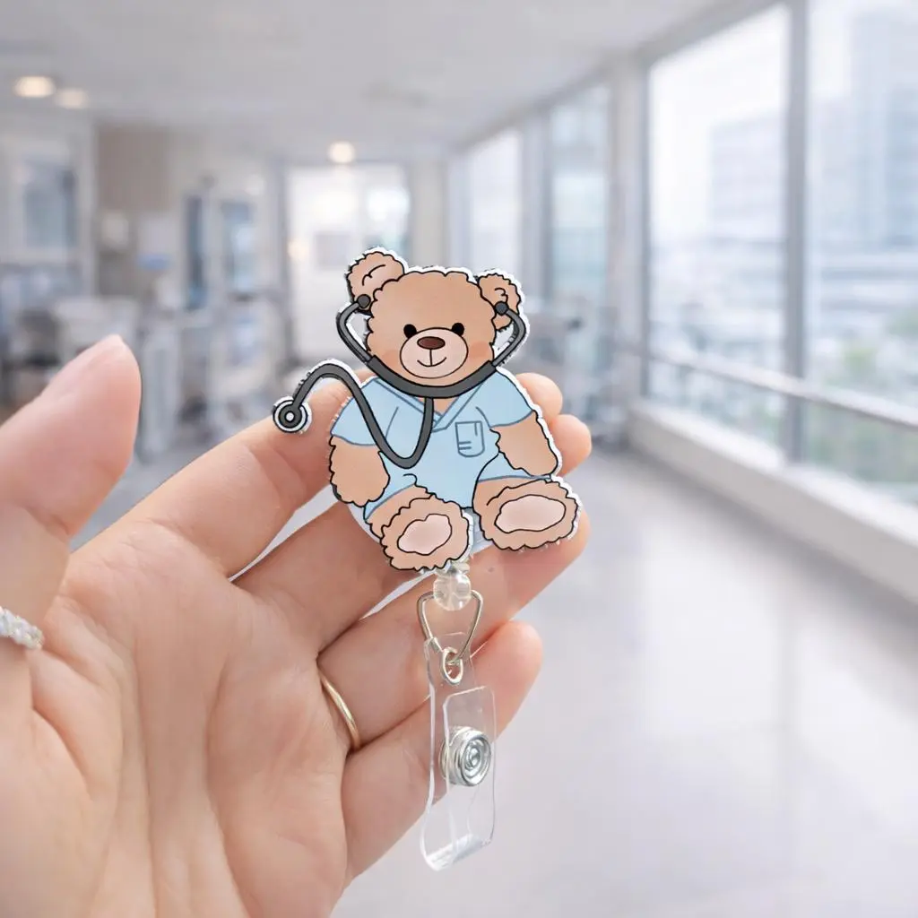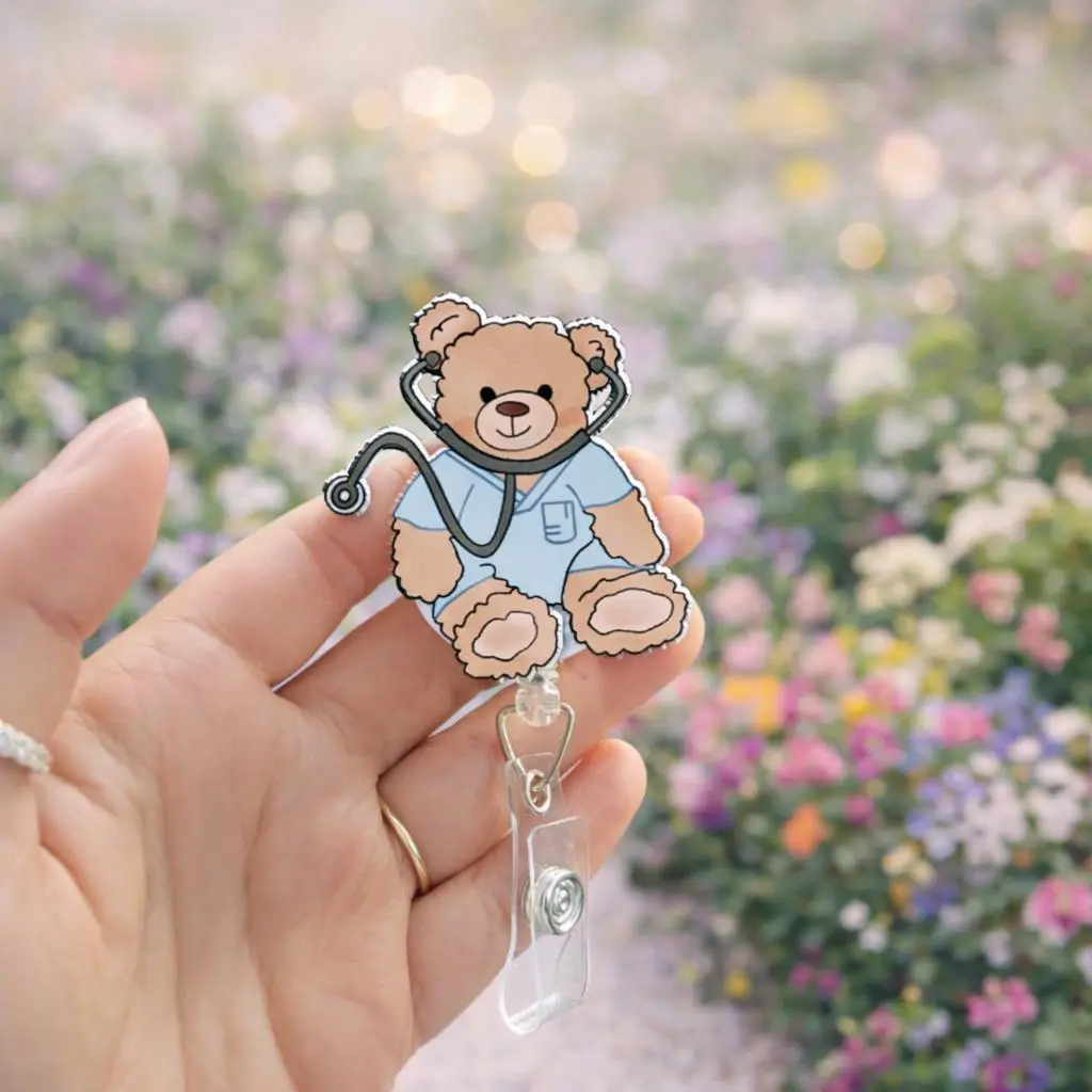 Cute Nurse Badge Reel Teddy Bear, RN Badge Holder, Retractable ID Clip, Nurse Gift, CNA Medical Badge Reel, Pastel Aesthetic Nurse Accessory