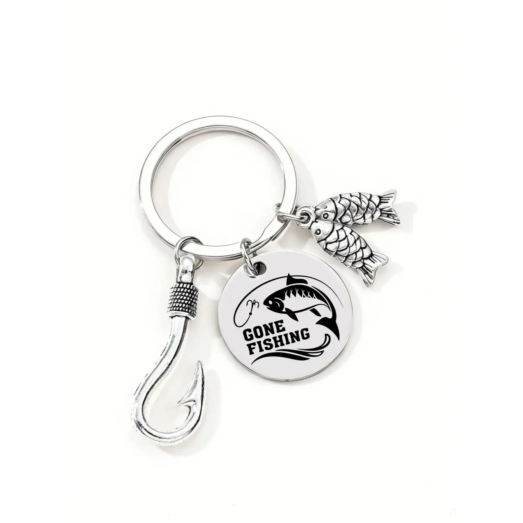 New Simple Fashion Fish Hook Small Alloy Keychain, Stainless Steel Fishing Lover Memorial Gift, Daily Bag Accessory Charm, Fish Enthusiast, Fish Hook Design