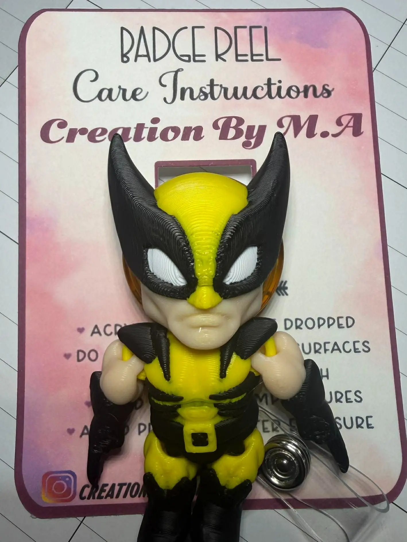 This is a beautiful 3-D badge reel. It'i be a perfect gift for a friend or a loved one keep in mind. They have a little wiggly legs and some of them they have little wiggly arms as well. It's a perfect touch for a perfect day at work.