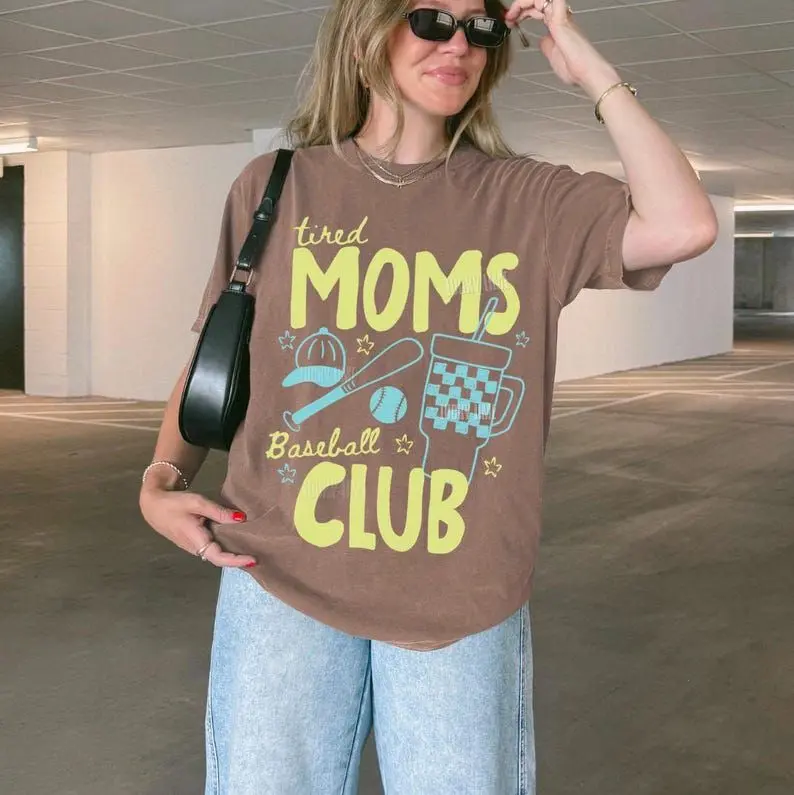 5. Tired Moms Baseball Club Shirt, Baseball Moms Club Shirt, Sports Mama Shirt, Trendy Game Day Tee, Hand Drawn Doodle Sports Tshirts for Mom