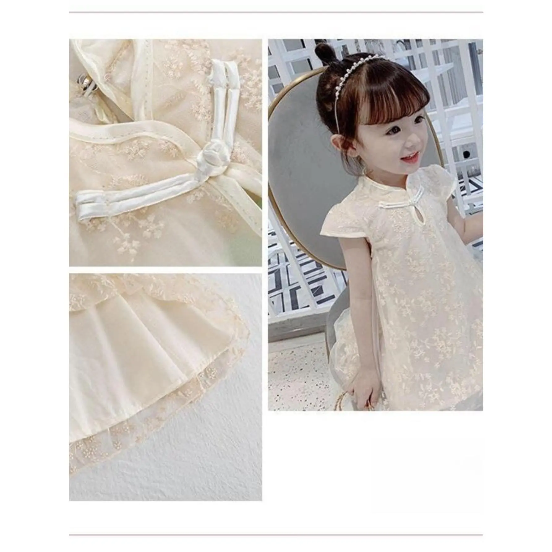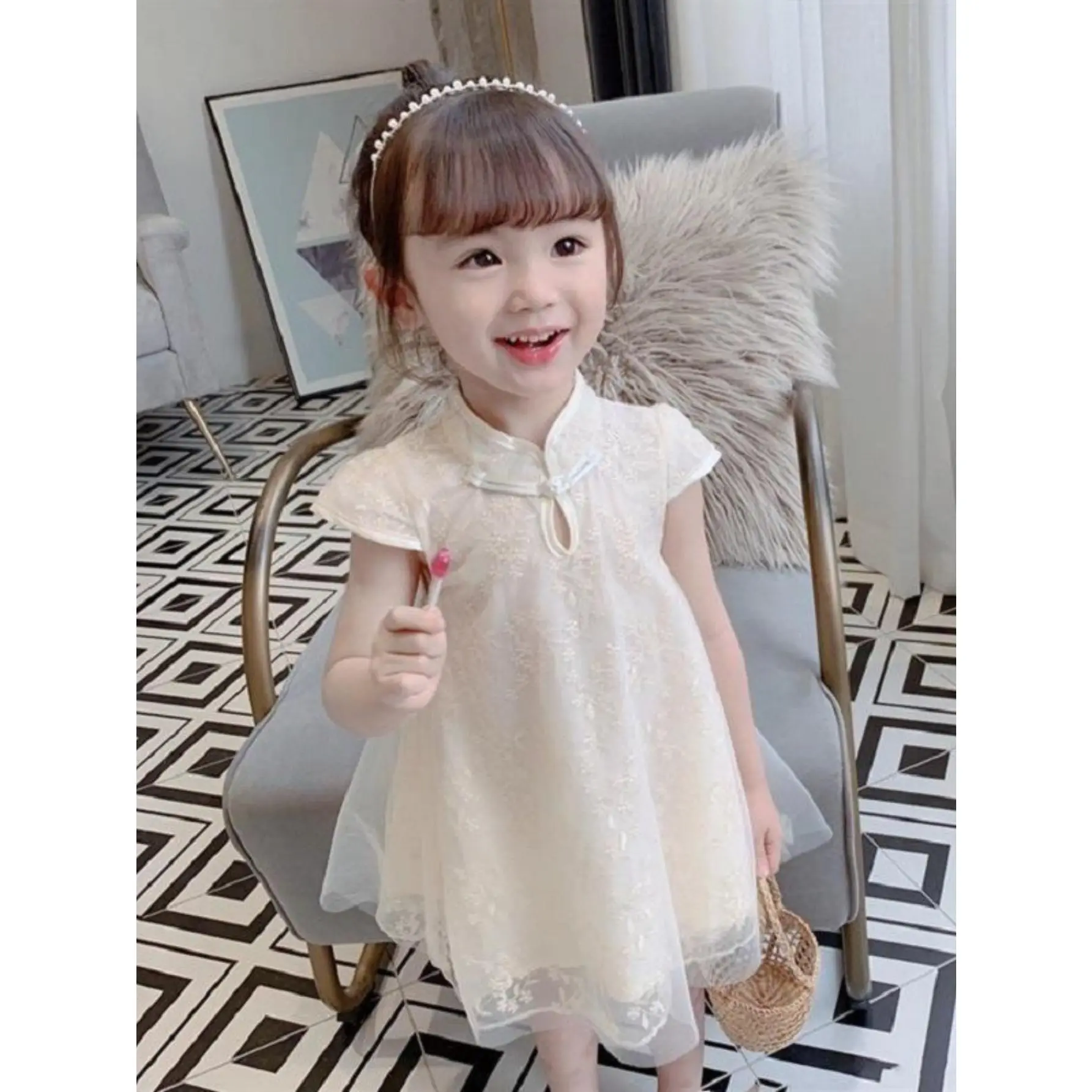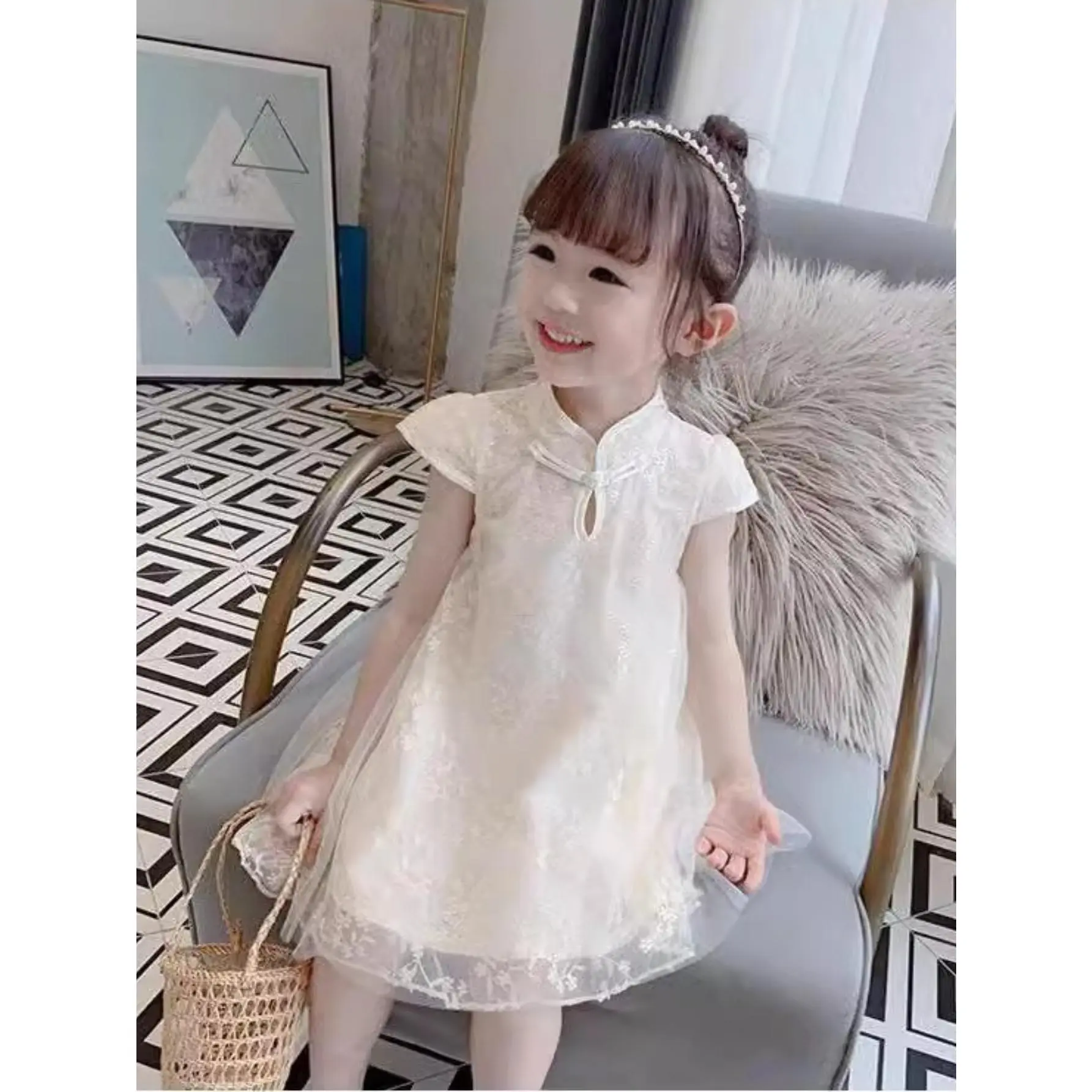 NewGirls' Clothing New Chinese Style Cheongsam Mesh Dress Summer Clothing Cheongsam Dress Princess Dress Loose Girl Dress, Simple and Generous Fashion Classic Casual Versatile, Outdoor Activities, as Gifts, Daily Parties