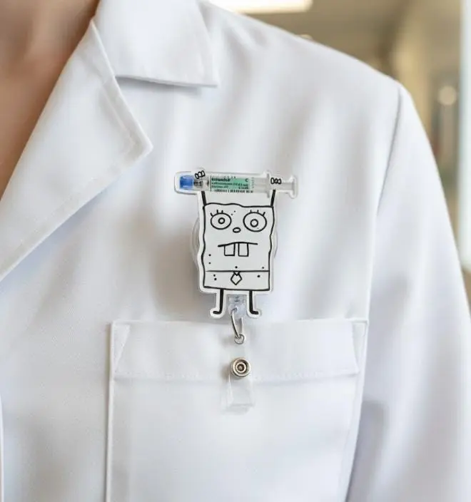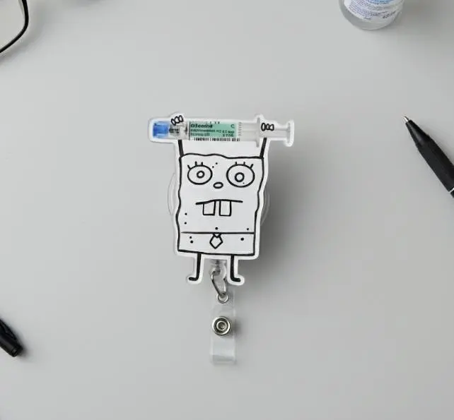 Funny Doodle Nurse Badge Reel, Cartoon Syringe ID Holder, Retractable Nurse Badge Clip, Cute Healthcare Work Accessory