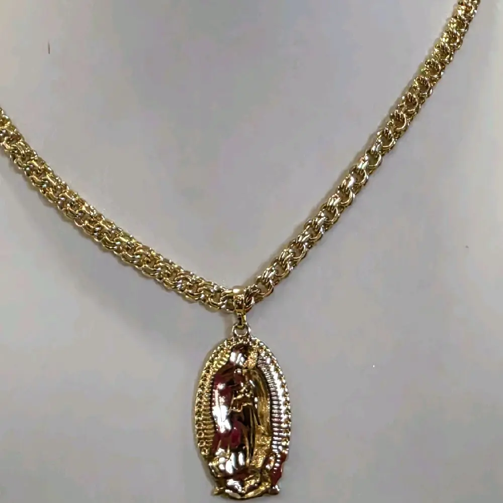 ·Virgin of Guadalupe Pendant: The necklace includes a Virgin of Guadalupe pendant, measuring approximately 1.5 x 0.5 inches. It adds a spiritual touch to your outfit.
