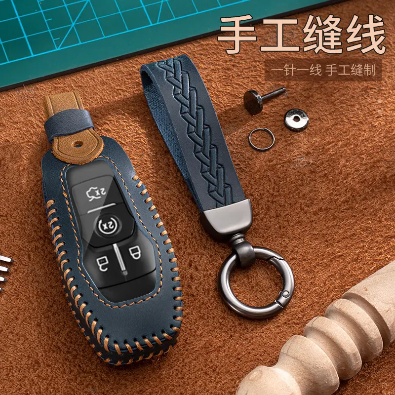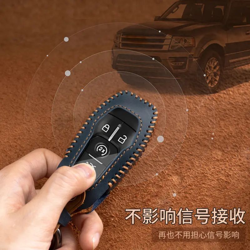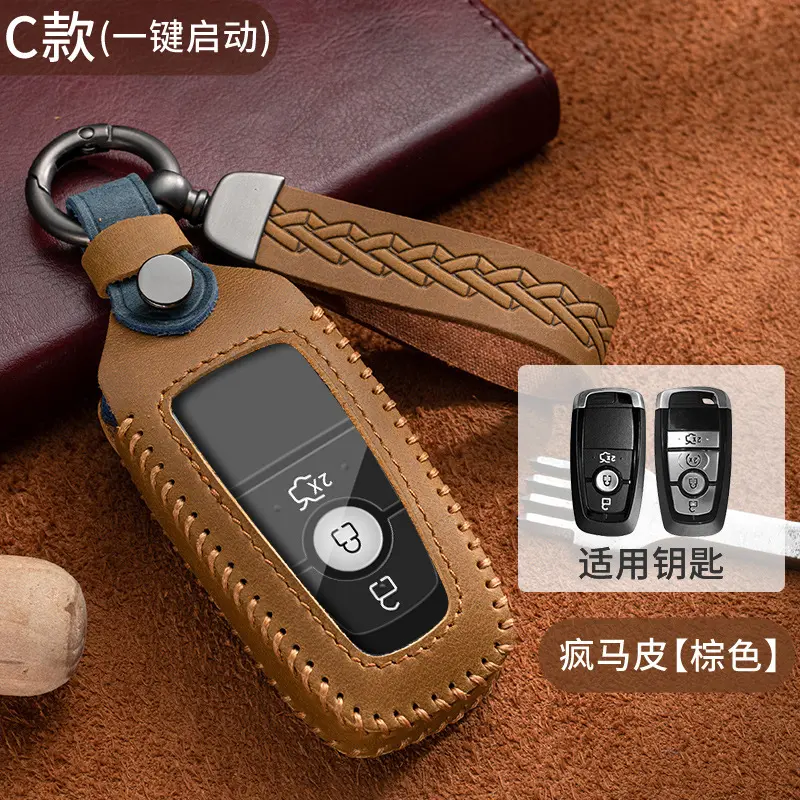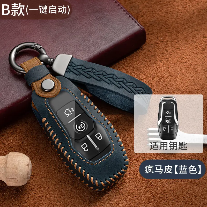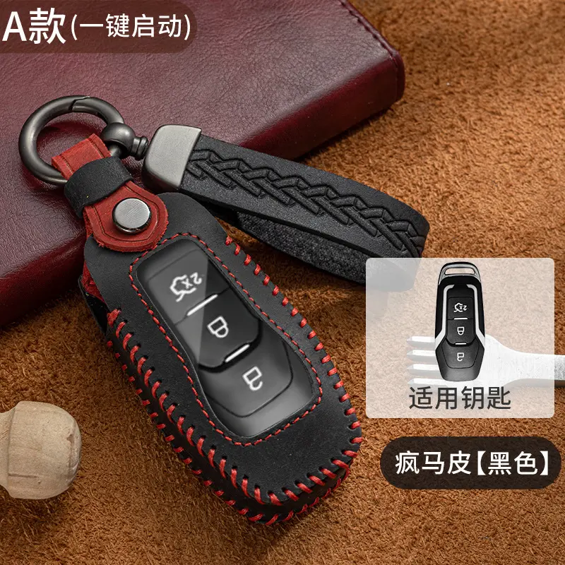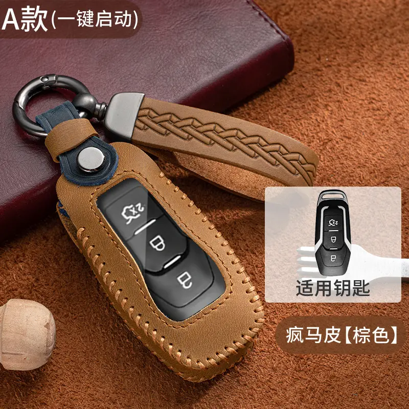 Suitable for Ford key cases: Focus, Escort, Mondeo, Escape, EcoSport, Edge, Taurus, genuine leather with buckle
