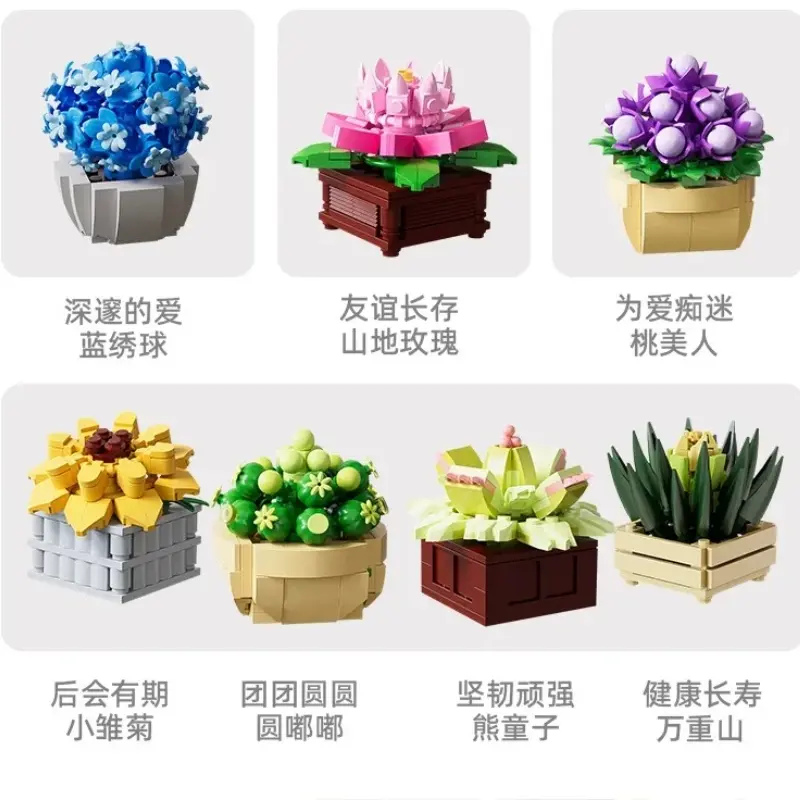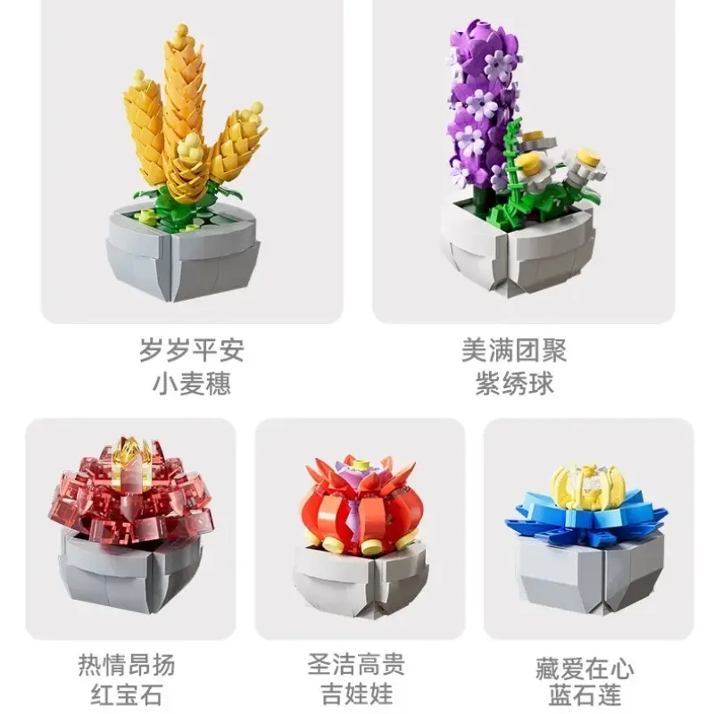 107pcs Kids Succulent Flower Building Blocks Mini Potted Plant Bricks Set, Desktop Ornament Birthday Gifts for Girls Boys