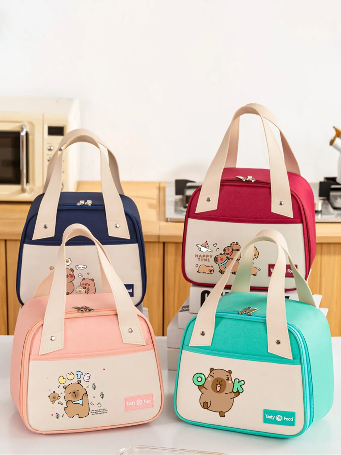 1Pc Capybara Portable Insulated Lunch Bag Thermal Bento Bag Lunch Box Tote Bag For Work School
