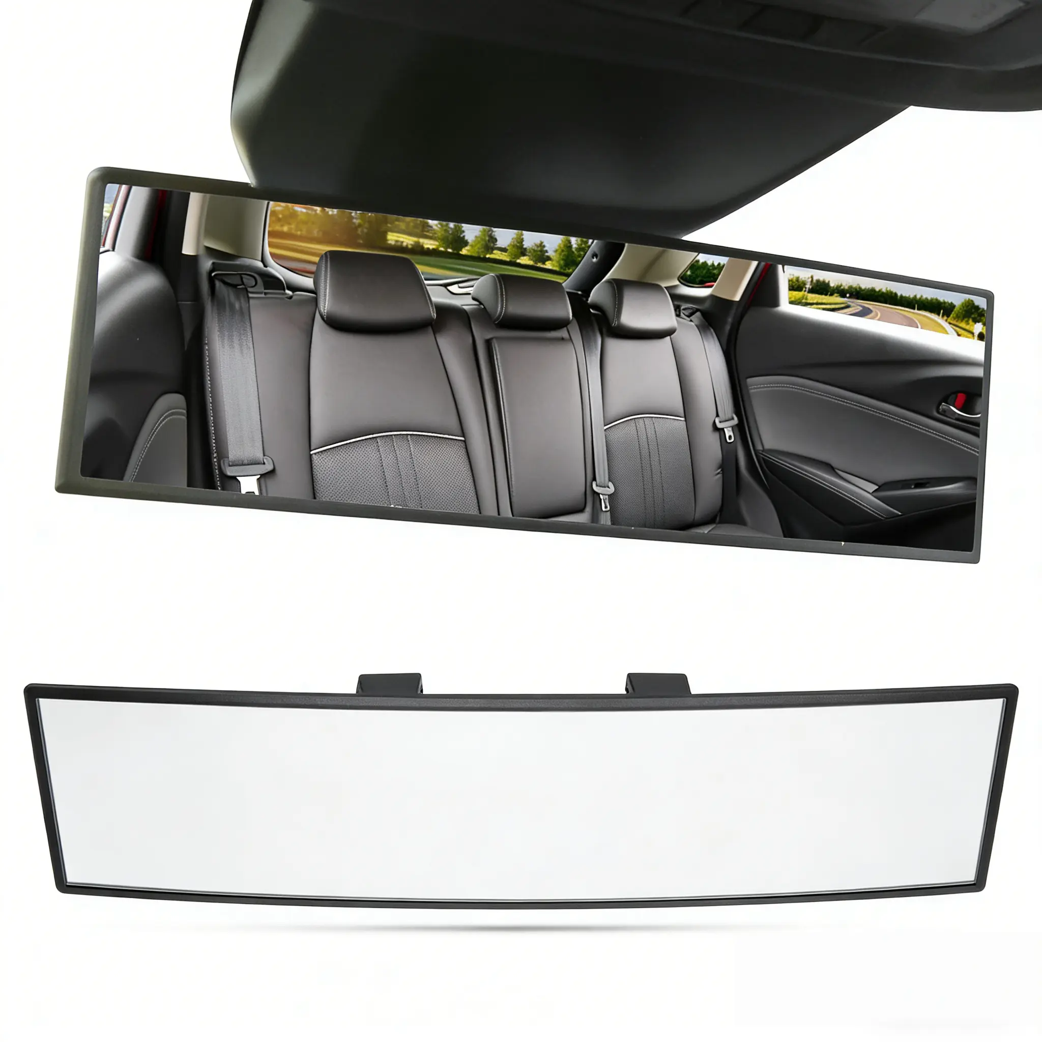 Clip on wide-angle rearview mirror, 11 inch universal interior panoramic rearview mirror, suitable for cars, trucks, and SUVs, with convex curvature design to eliminate blind spots, anti fall design, easy to install rearview mirror