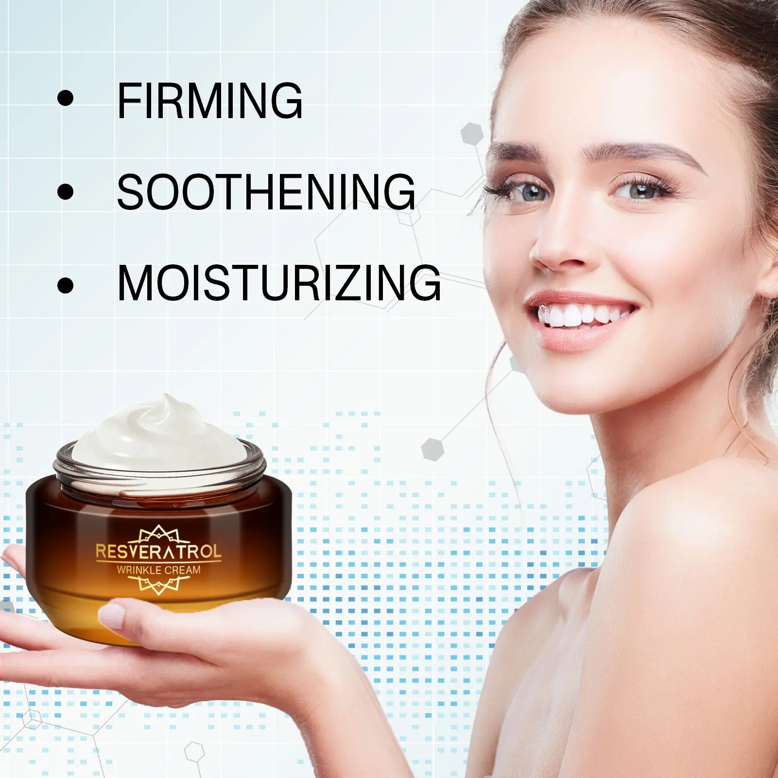 【Formula】: Resveratrol helps reduce wrinkles and aging signs, providing youthful-looking skin.