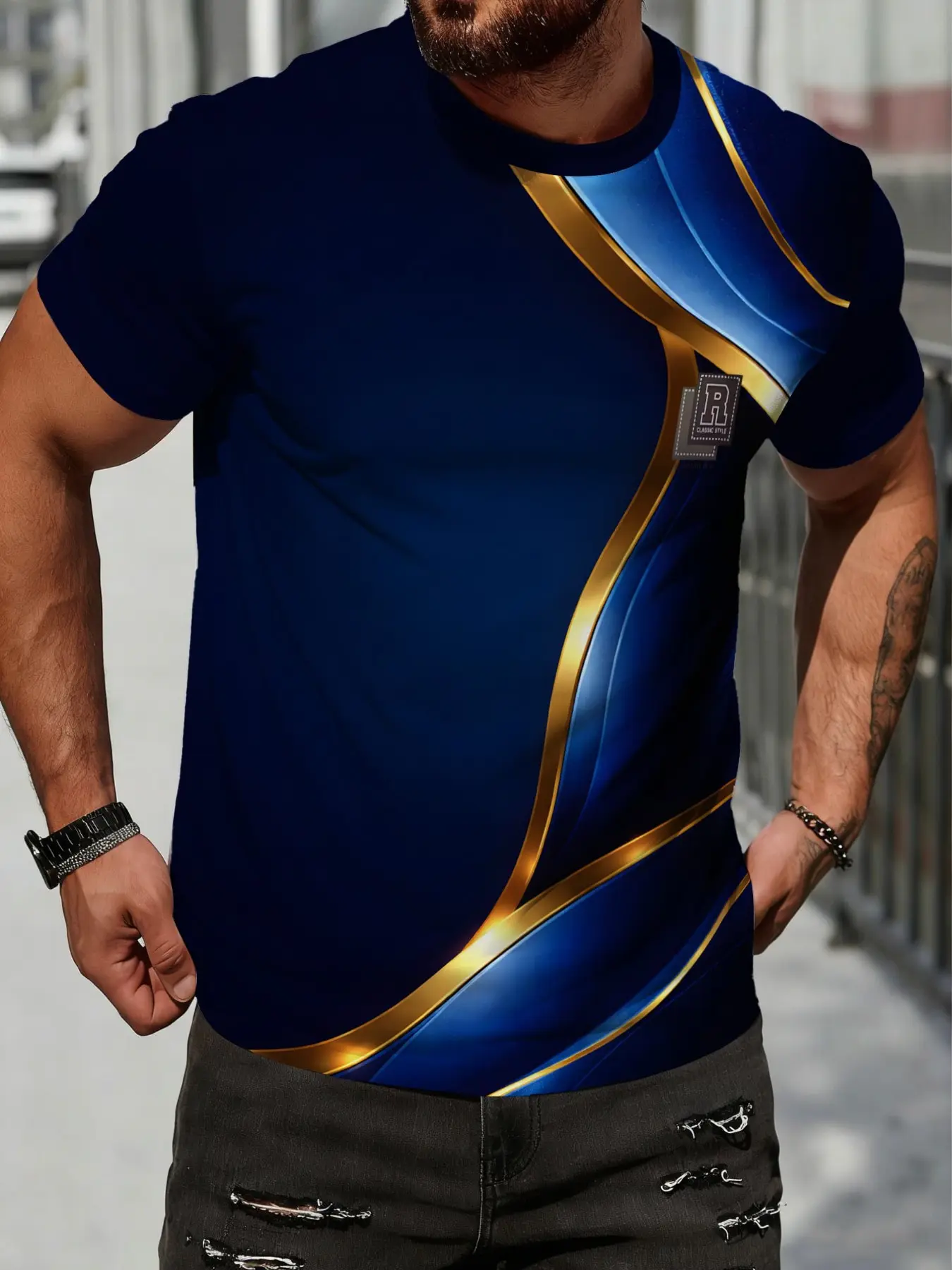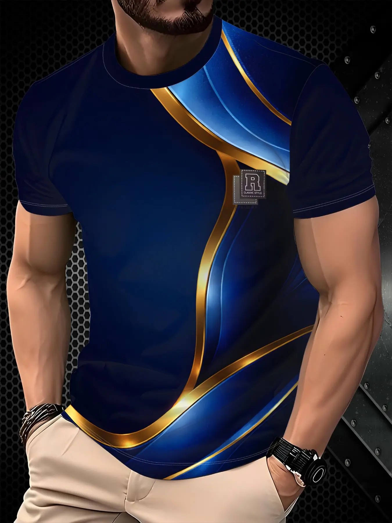 Unisex Casual Short Sleeve T-Shirt, Gradient Blue Luxury Style, Summer Streetwear, Breathable Ice Silk Material, Ideal for Daily Wear & Sports