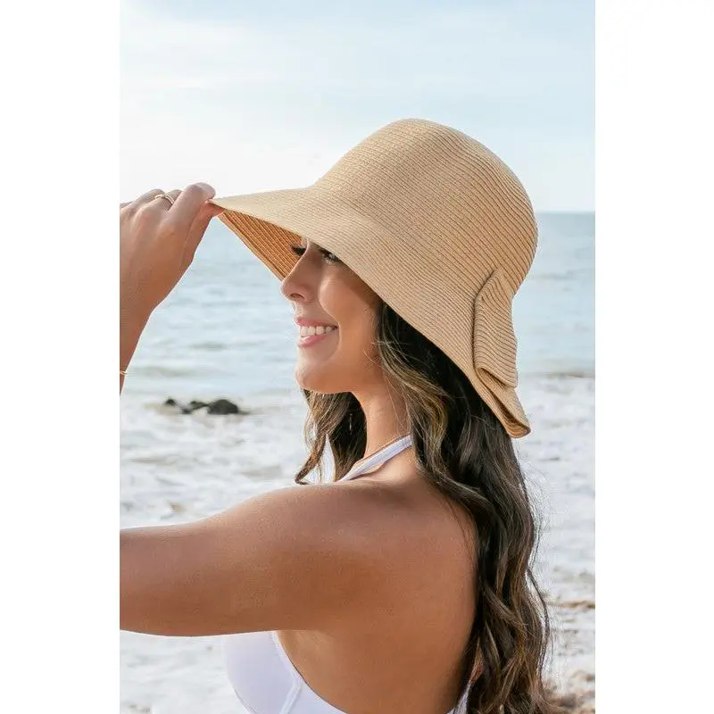 Bow Back Straw Bucket Hat Details: - Oversized Bow Back Detail - Internal Wire Brim for Perfect Styling - Foldable & Packable - Brim: Approx. 4\" Length - 100% Straw - One Size Fits Most