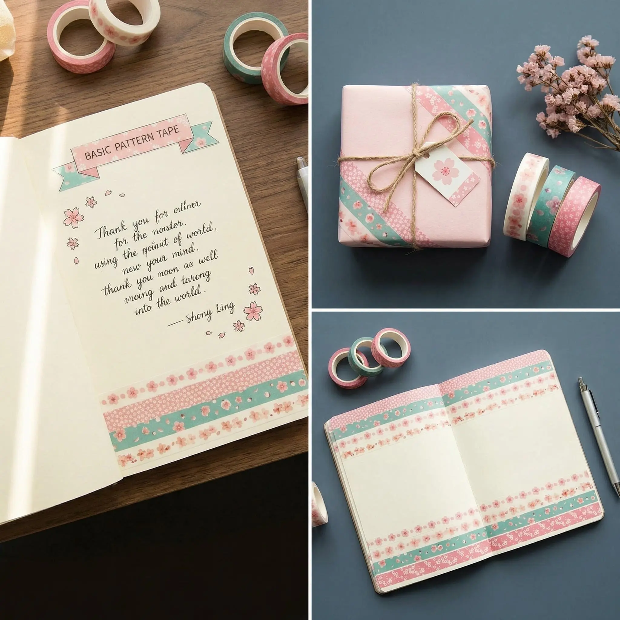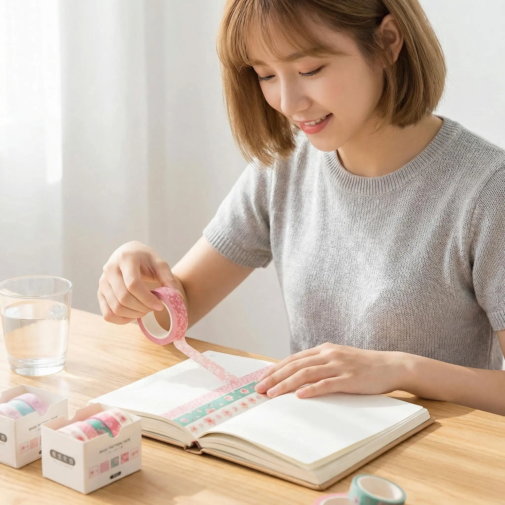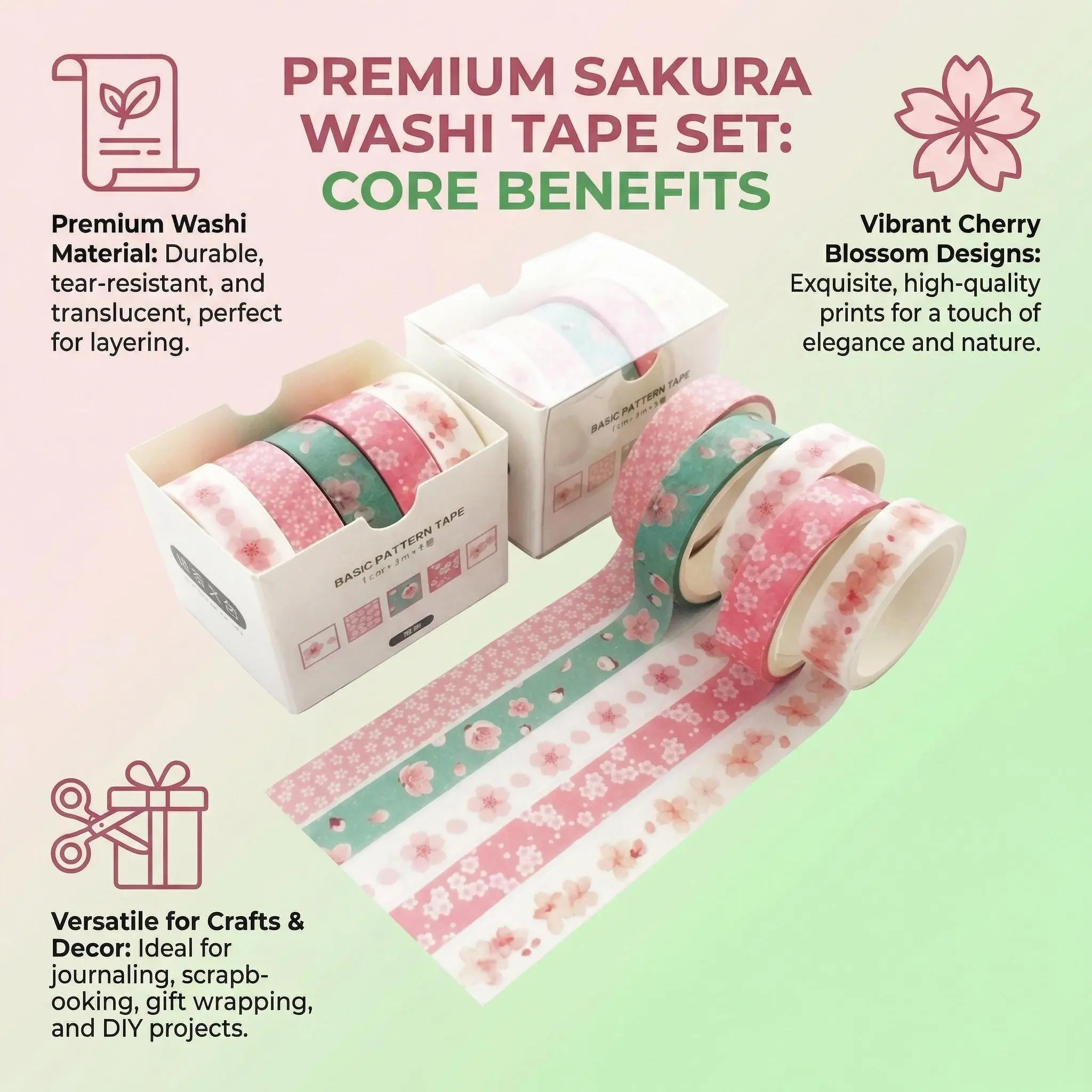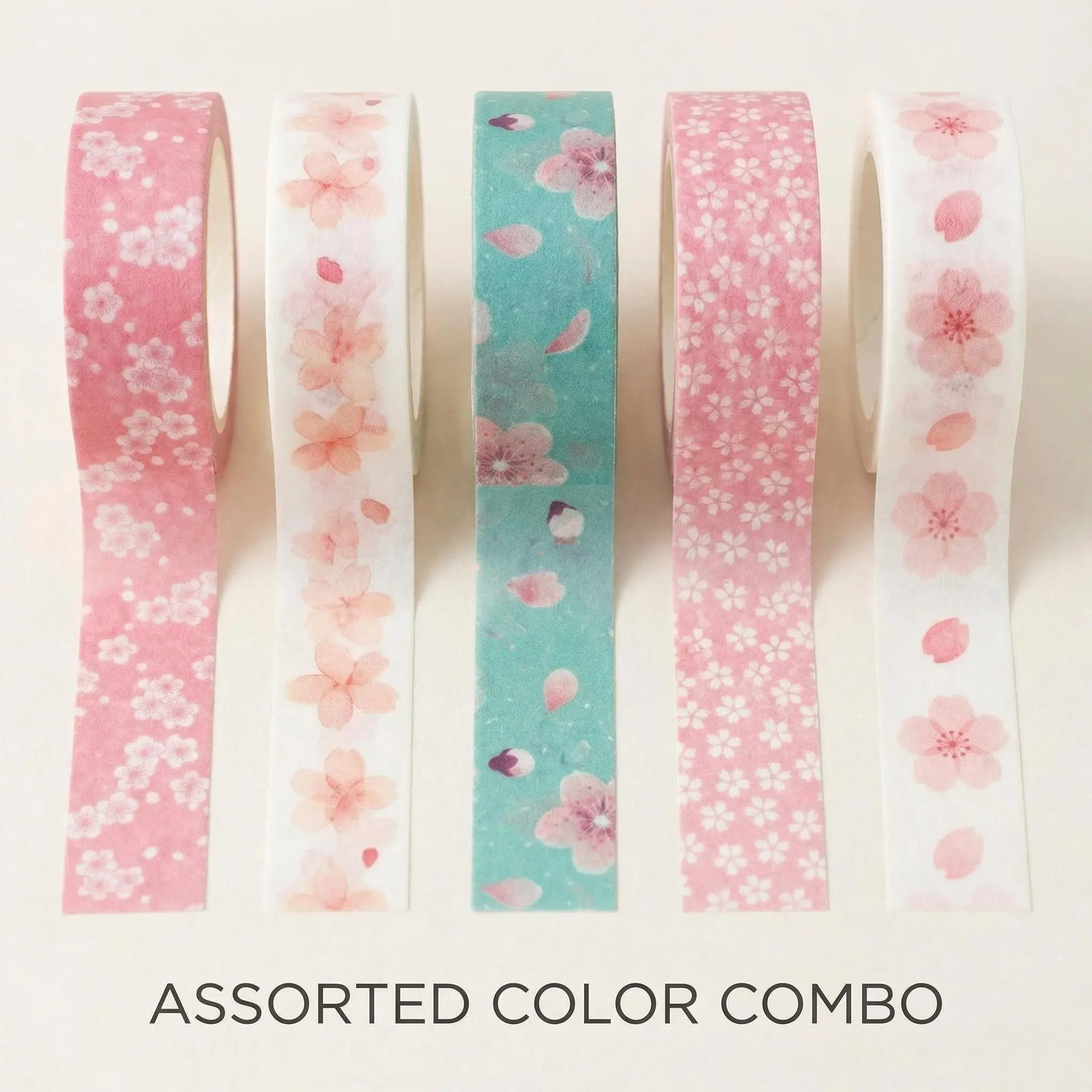 5 Rolls Washi Tape Set Creative Basic Skinny Decorative Tapes for Arts, DIY Crafts, Journals, Planners, Scrapbooking, Wrapping (Sakura)