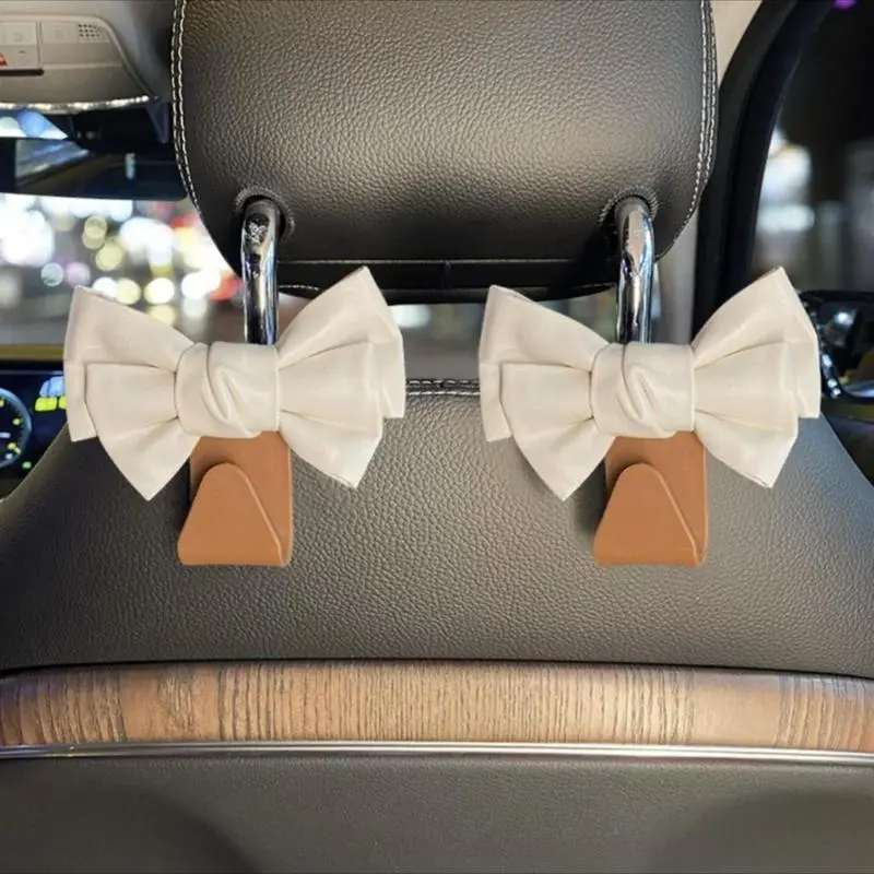 ·2pcs Bowknot Design: These car hooks feature a cute bow design, adding a playful and attractive element to your car's decor. The bowknot design enhances the aesthetic appeal of your vehicle.