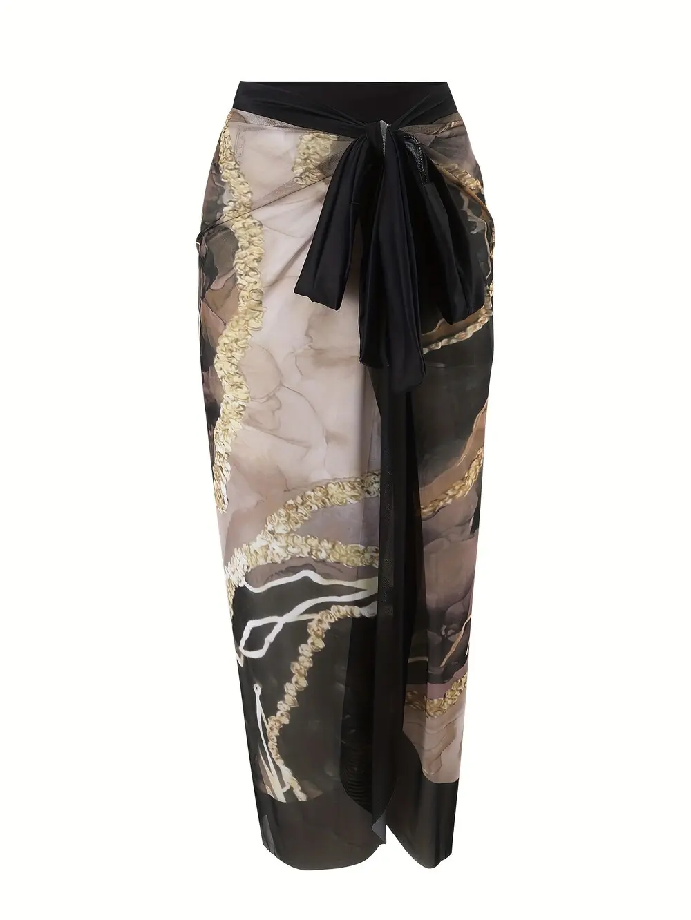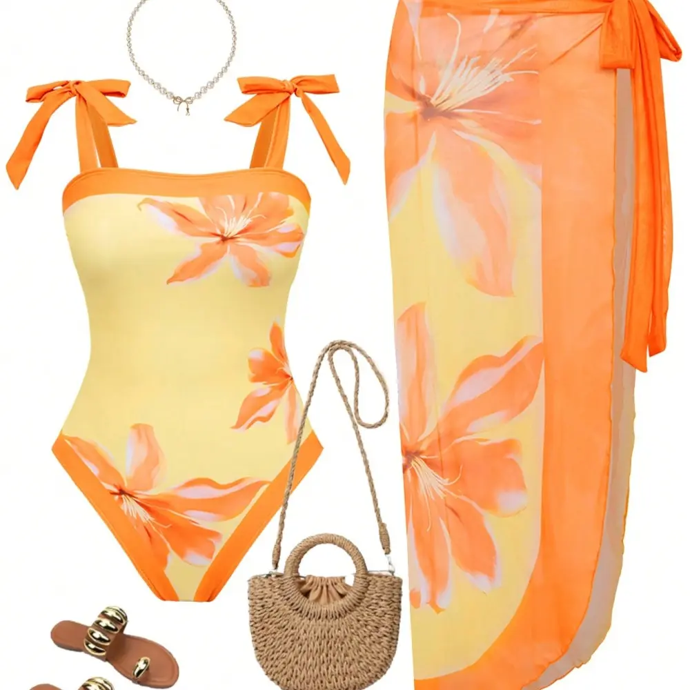 This women’s two-piece swimsuit features a classic marble print, combining a one-piece bathing suit with a sheer skirt cover-up for a stylish vacation look.The high-waisted tummy control design smooths your torso and creates a flattering slim silhouette, while the soft, stretchy fabric ensures all-day comfort. The included sheer skirt adds elegant coverage and provides sun protection, perfect for going from the beach to casual outings.
