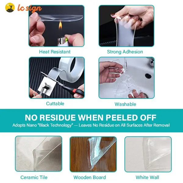 Say goodbye to drilling and nailing! The LC SIGN Double-Sided Nano Tape creates a powerful, vacuum-like bond using pressure-sensitive adhesive. From everyday organization to heavy-duty mounting, we've got you covered.
