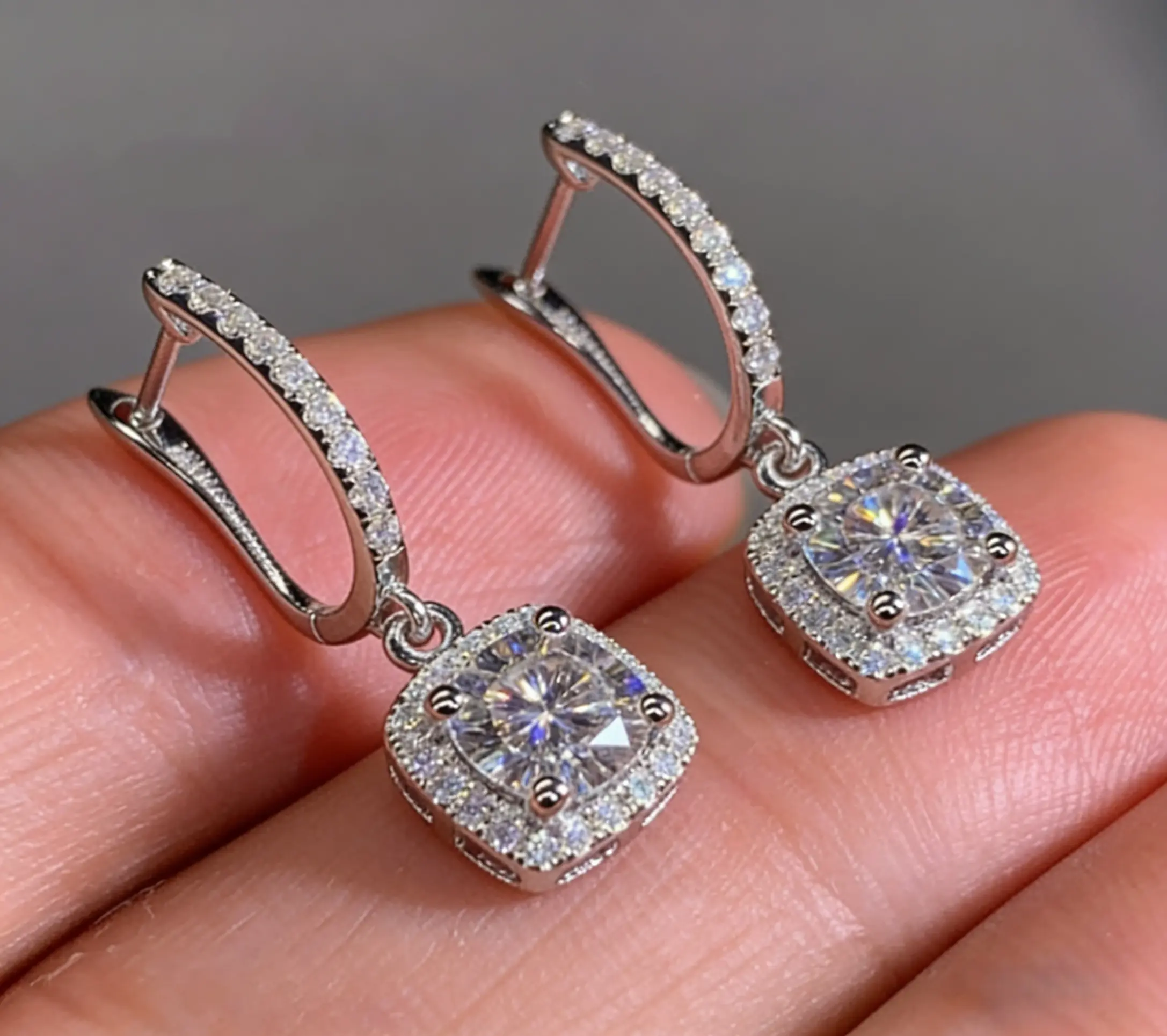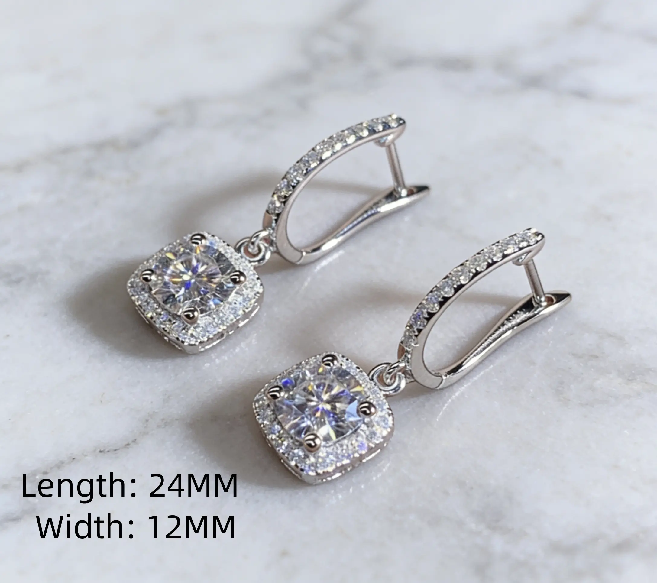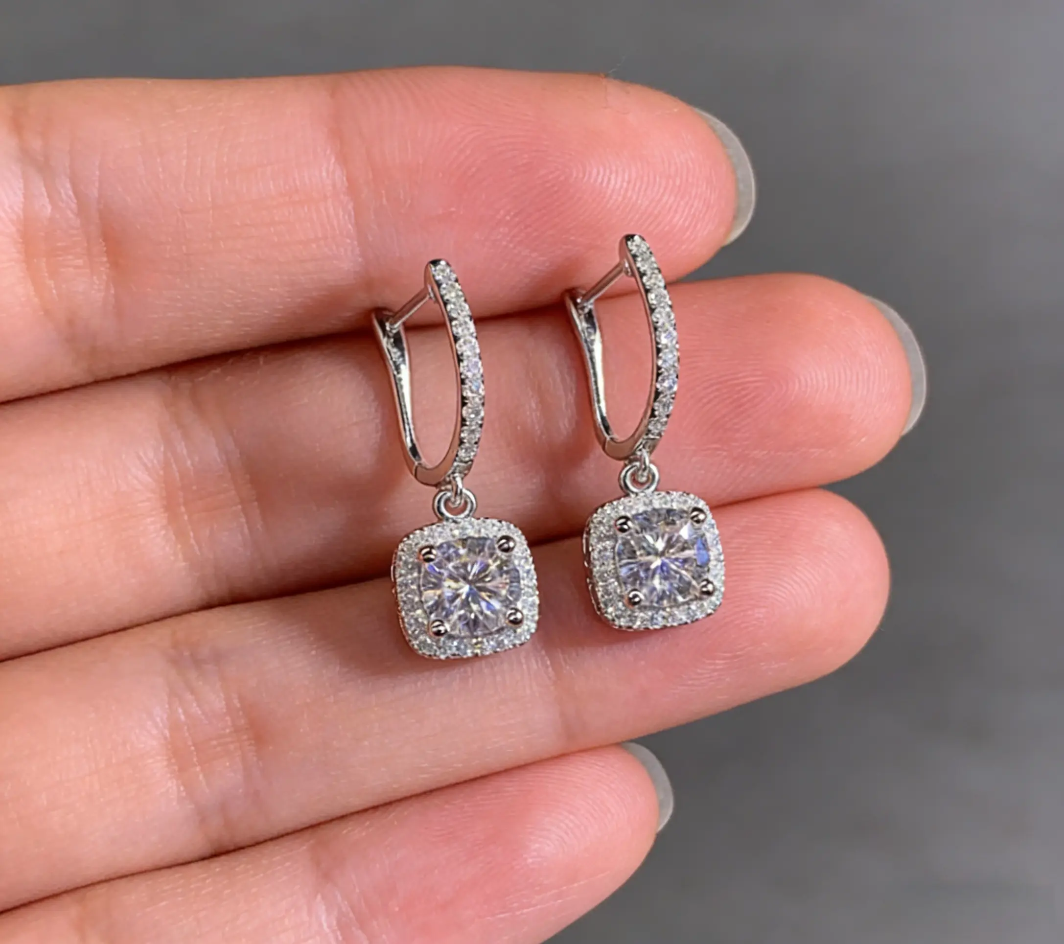 Elevate your jewelry collection with these stunning S925 silver-plated cushion cut moissanite earrings! Boasting a luxurious halo design and brilliant lab-grown moissanite, these earrings deliver the fire and radiance of natural diamonds at an affordable price, perfect for elevating any look from casual to formal.