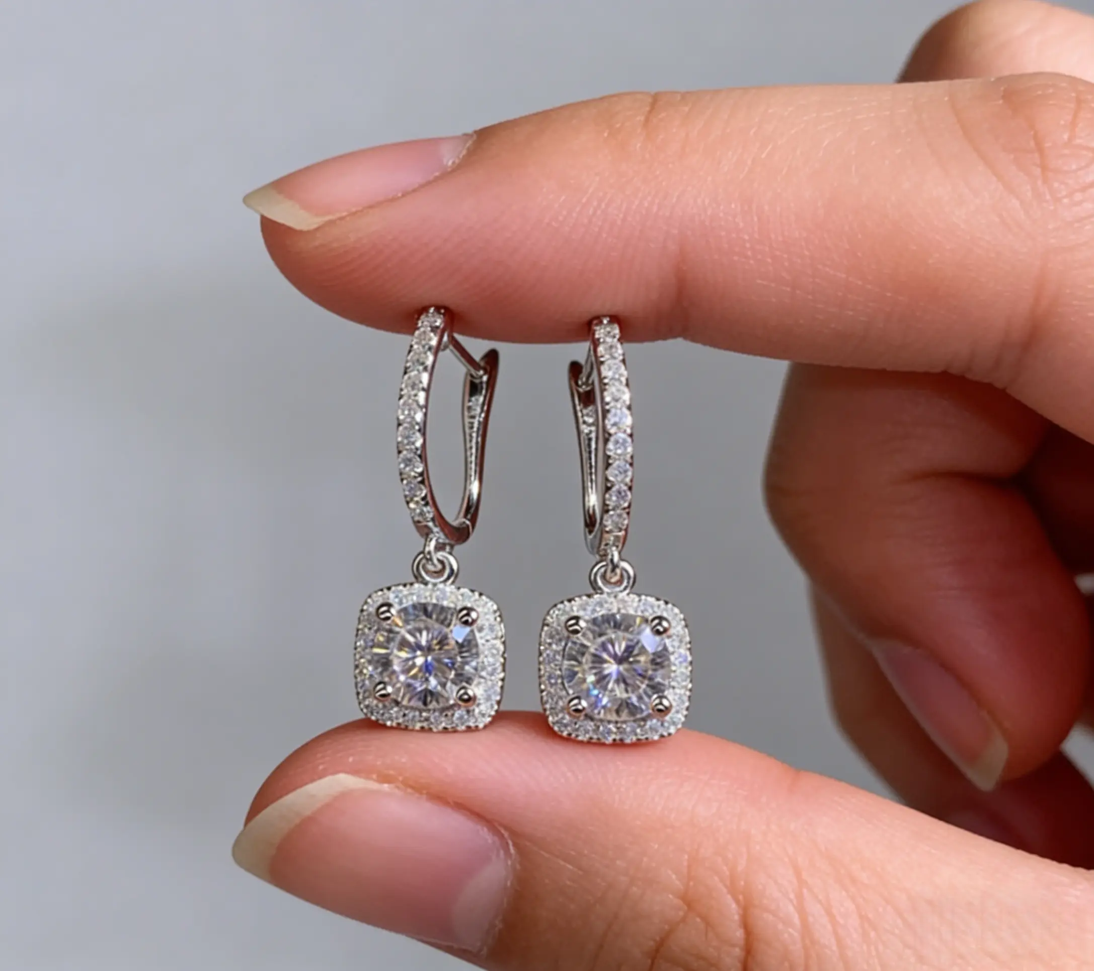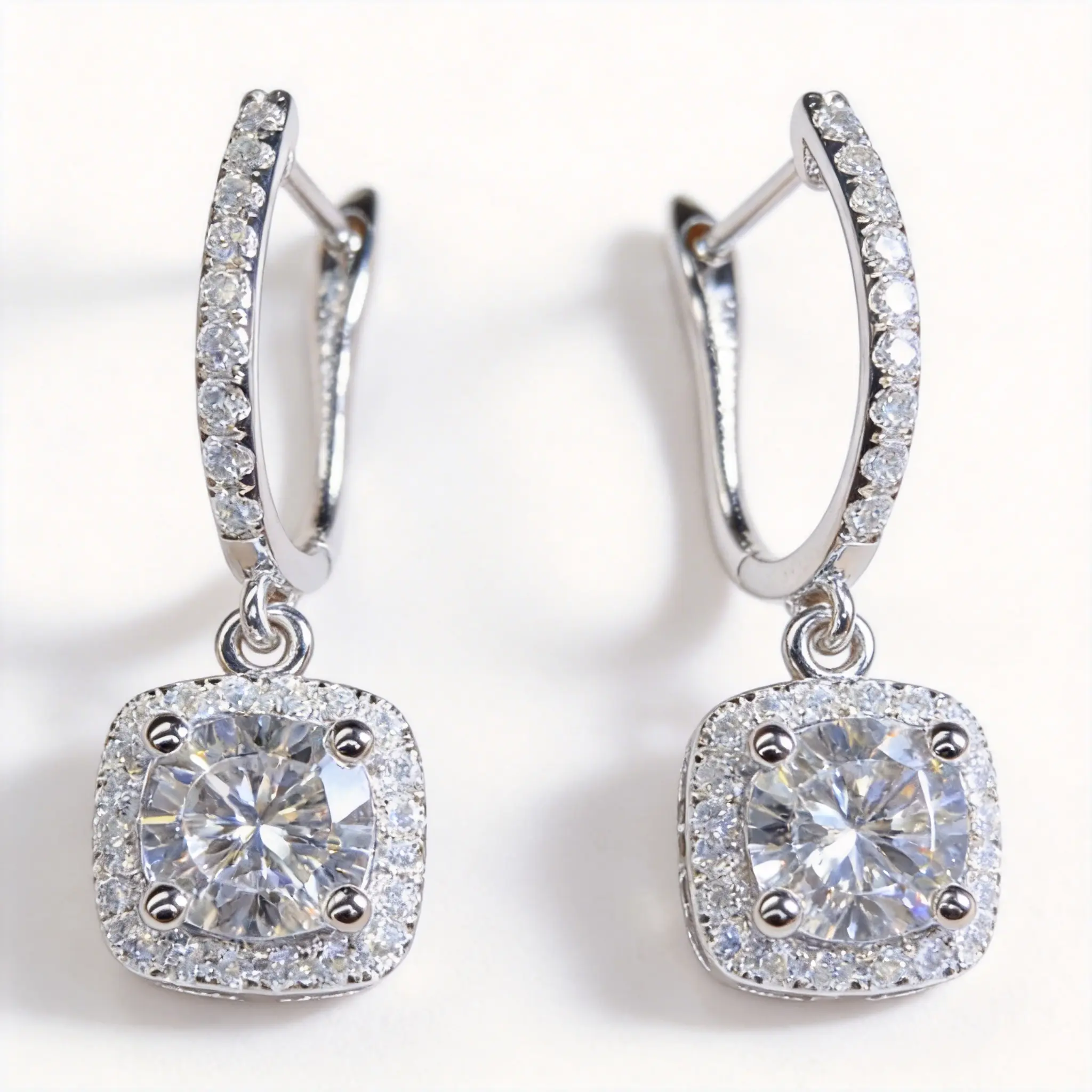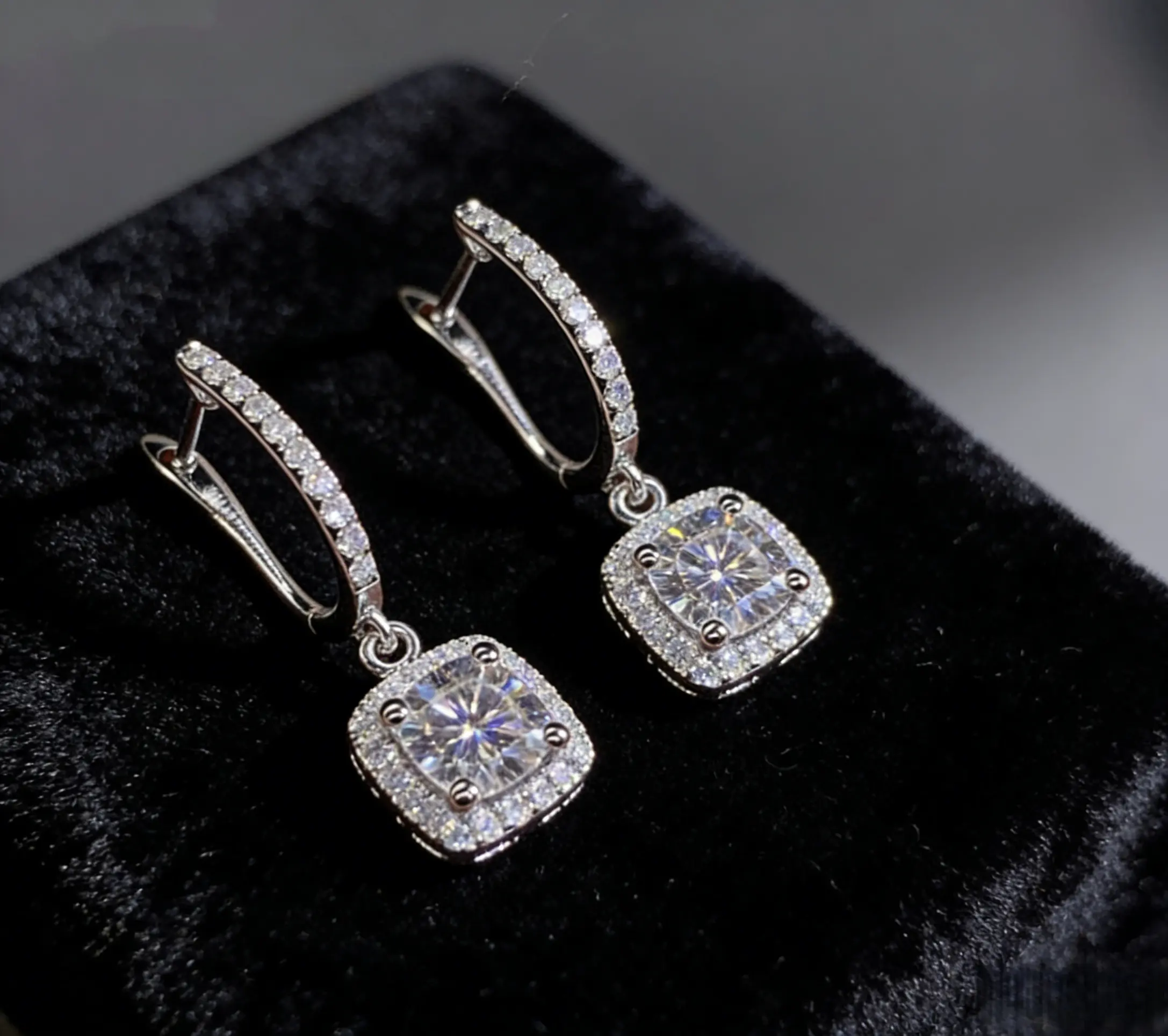 Elevate your jewelry collection with these stunning S925 silver-plated cushion cut moissanite earrings! Boasting a luxurious halo design and brilliant lab-grown moissanite, these earrings deliver the fire and radiance of natural diamonds at an affordable price, perfect for elevating any look from casual to formal.