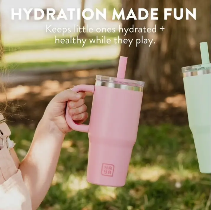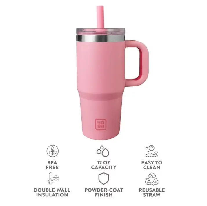 5. YAYA My First Travel Tumbler for Preschool & Kids 3+, Insulated Stainless Steel Tumbler with Reusable Silicone Straw & Spill-Proof Lid, Cup Holder Compatible, BPA-Free, 12oz, Pink