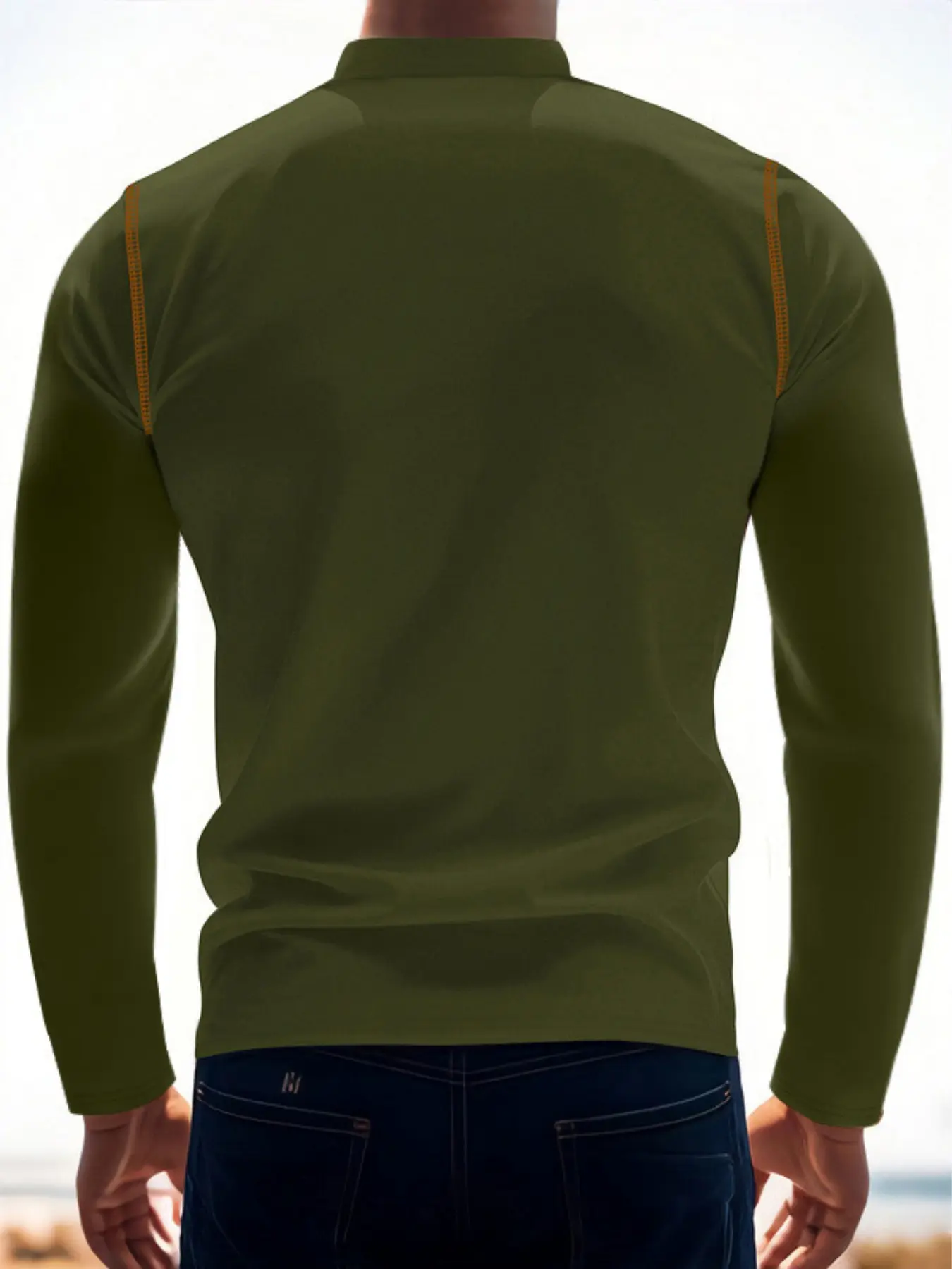Men's Henry Long Sleeve Shirt, Button Neck Casual T-Shirt, Pocketed Daily Wear Fashion Top, Essential Stylish Clothing