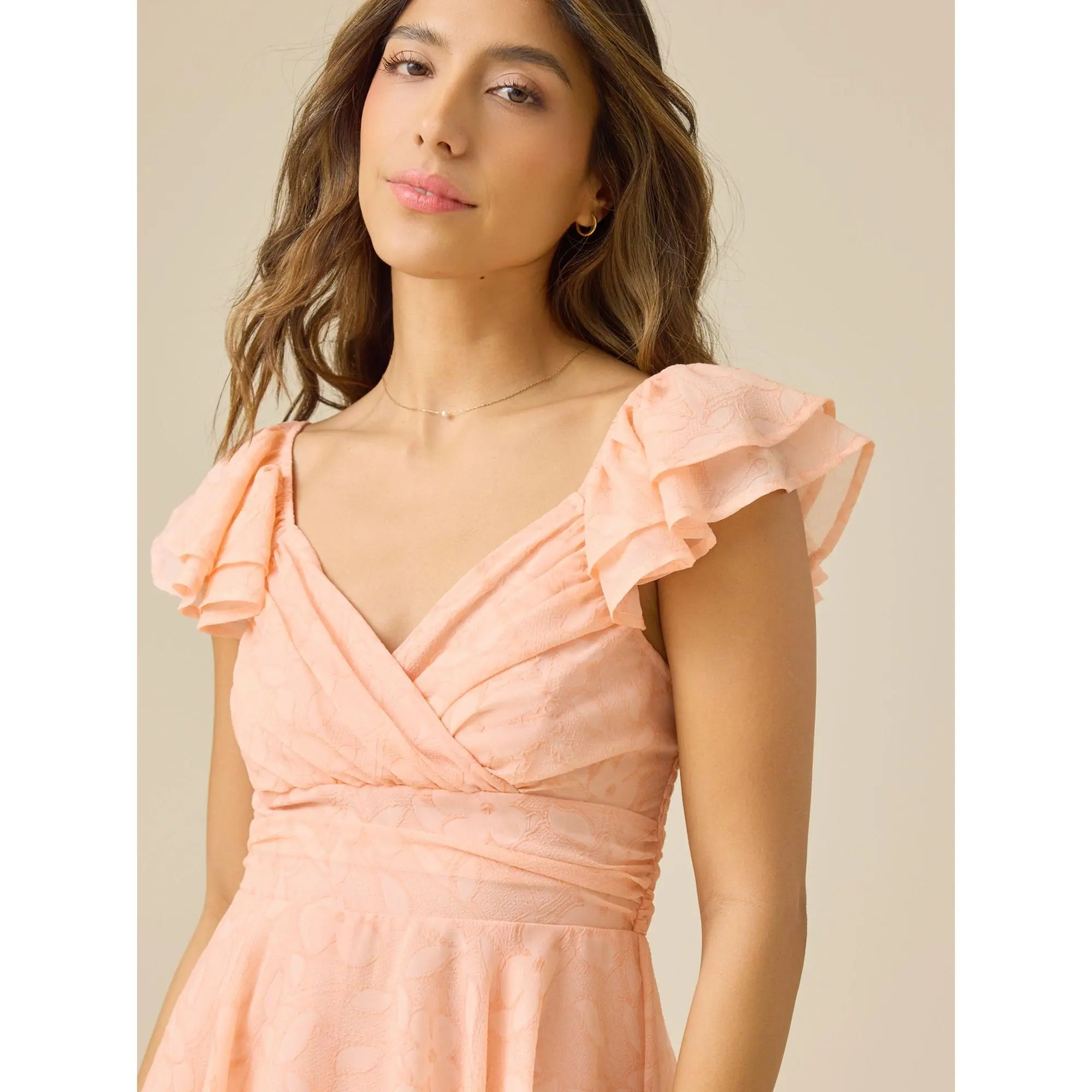 This flutter-sleeve romper is such a flattering silhouette, designed with a double layer and a fun tie-back detail. It’s feminine, easy to wear, and perfect for any special occasion.