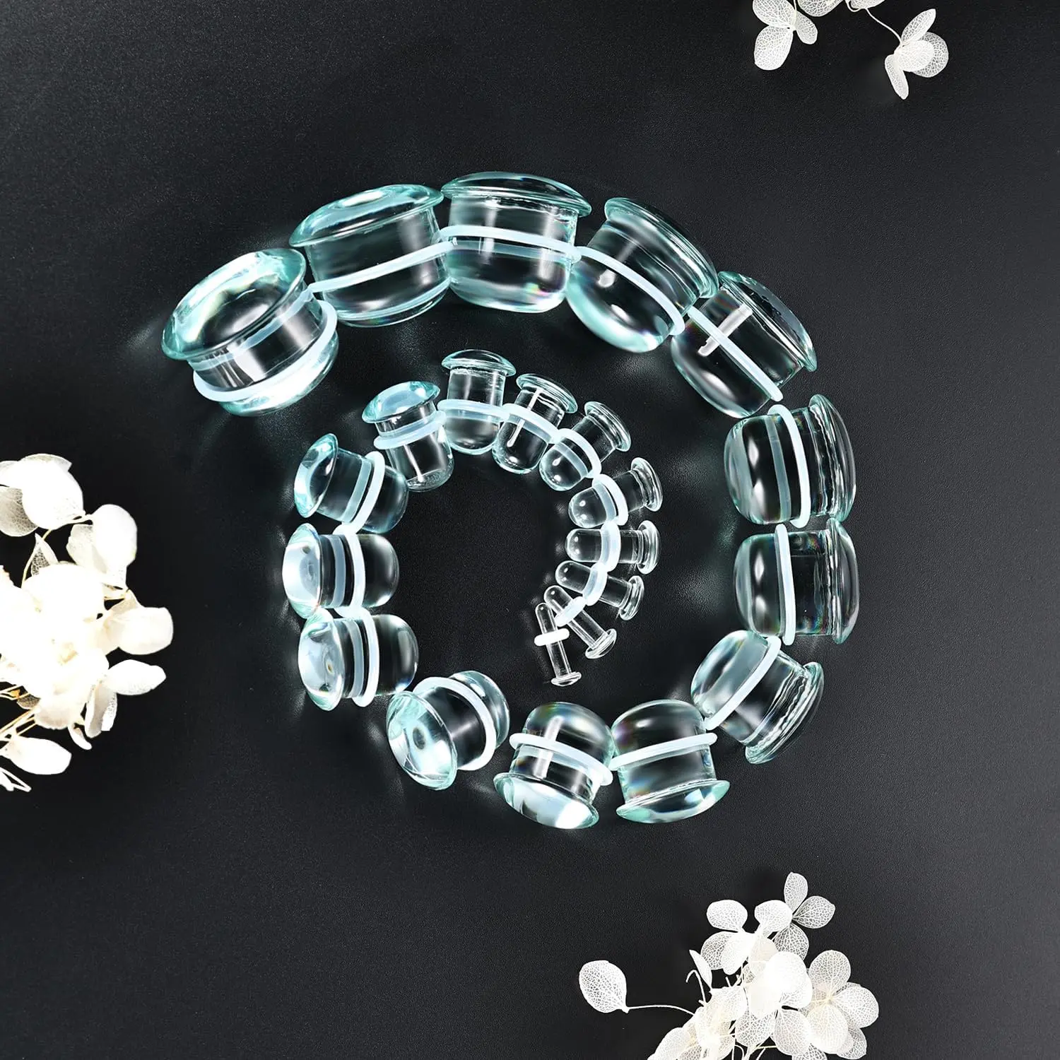 Glass Ear Stretching Kit Single Flare Plugs & Rubber Rings Unique 1mm Increments 3mm-25mm Gradual Sizing Smooth Glass Gauges for Daily Wear Earring Expander Stretcher Piercing Body Jewelry 4Pcs