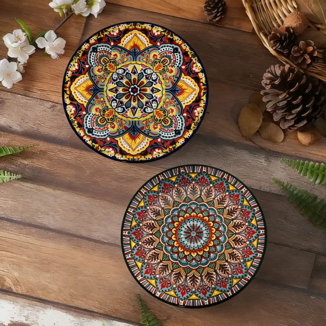 【Boho Aesthetic】: Embrace the bohemian vibe with our colorful ceramic plates, perfect for adding flair to any meal.