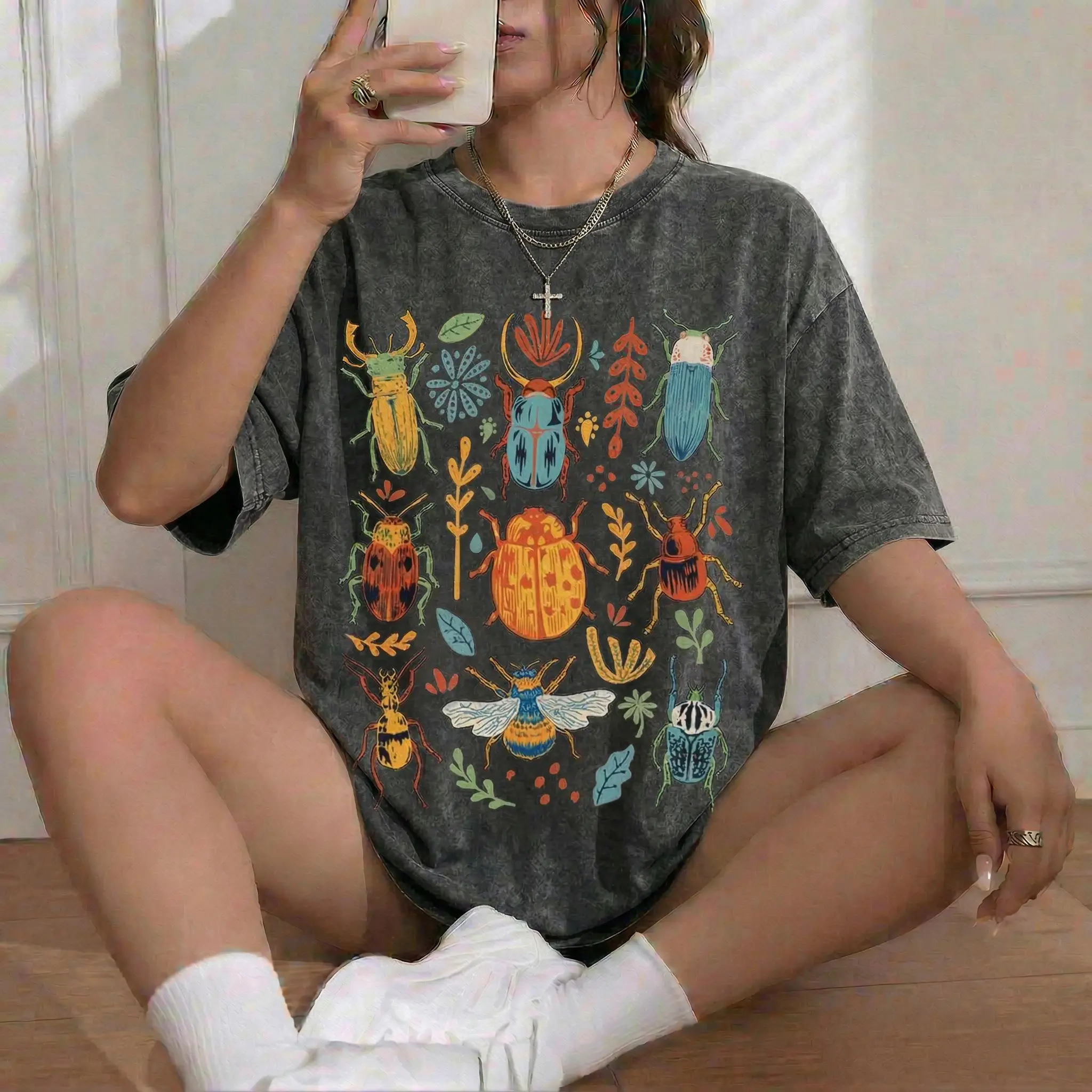 Vintage Acid Wash Bug Insect Graphic Tee Goblincore Aesthetic Shirt