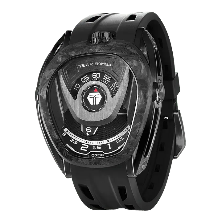 The case features asymmetrical yet strikingly balanced lines. The unique "cantilevered lugs" extend from the main case like a powered robotic arm, exuding a powerful, futuristic tension. Imbued with power and aggression, it is instantly recognizable and instantly memorable.