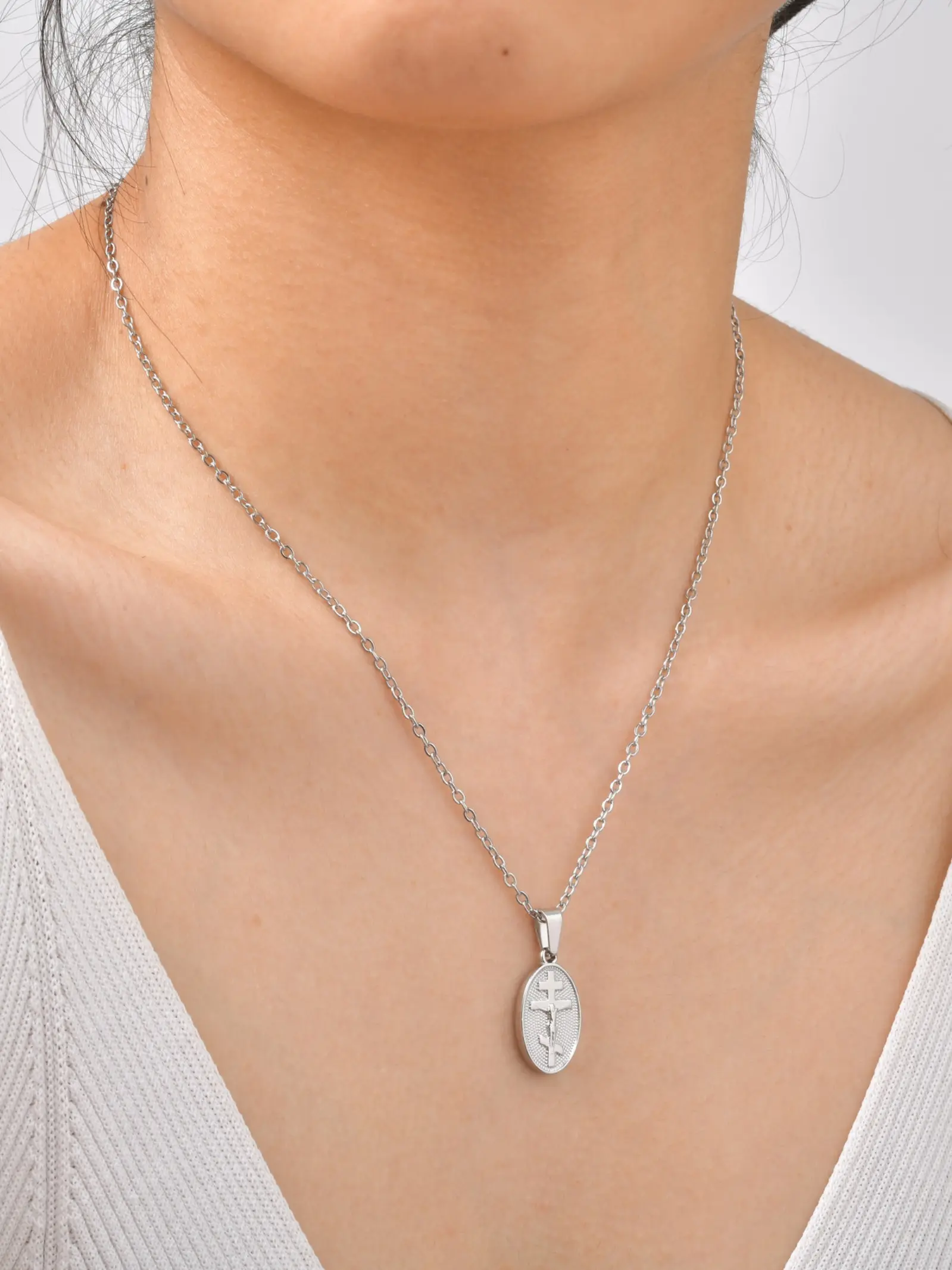 Luxury Vintage 18k Gold Cross Necklace, Elegant Portrait Pendant, Fashionable Versatile Neck Chain Jewelry, Stylish Accessory for All Occasions