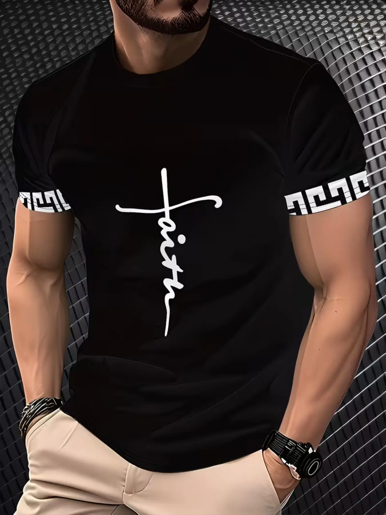Men's Fashion Casual T-Shirt, Lightweight Polyester, Round Neck Short Sleeve, All-Season Comfort, Daily Wear