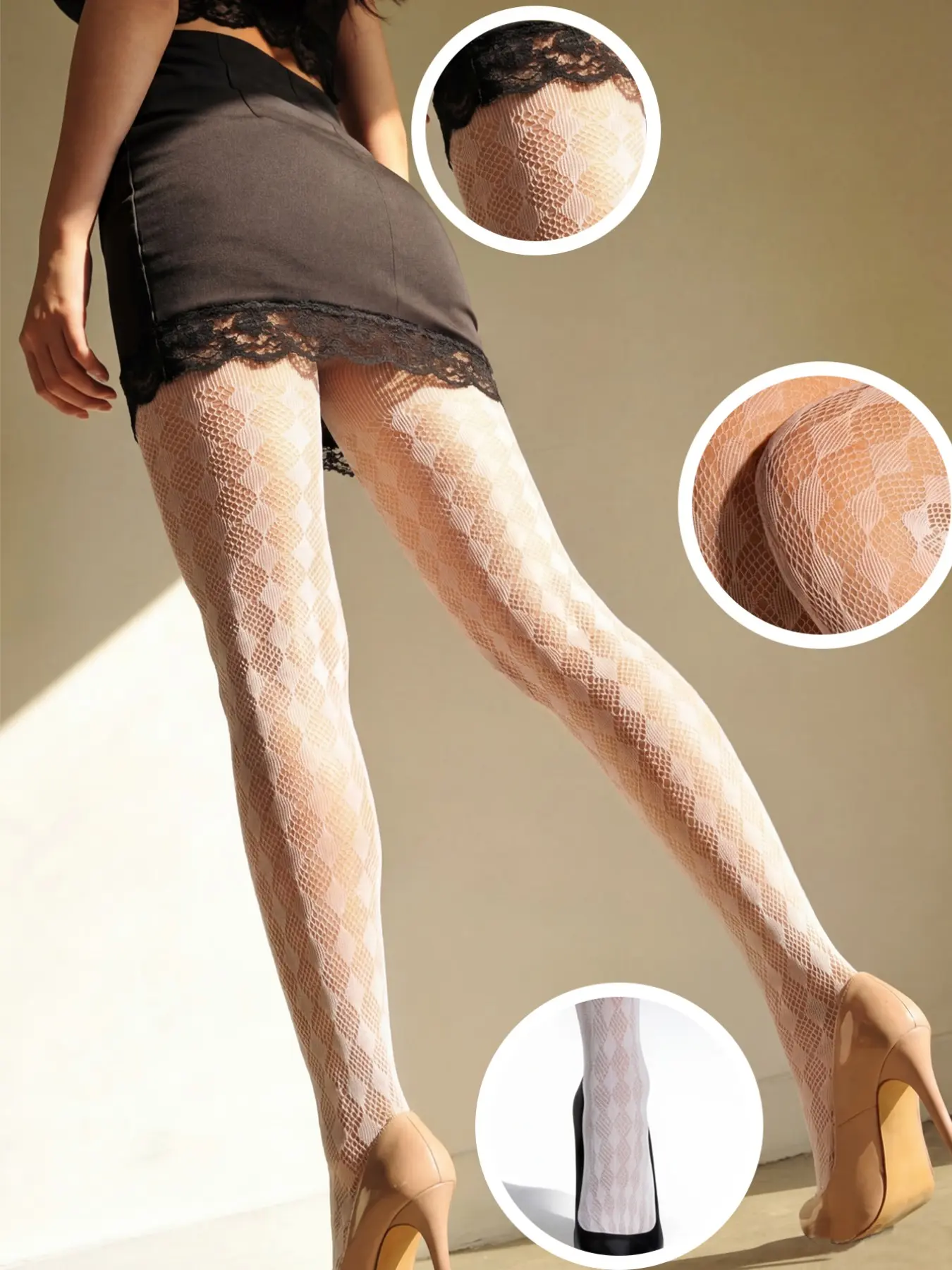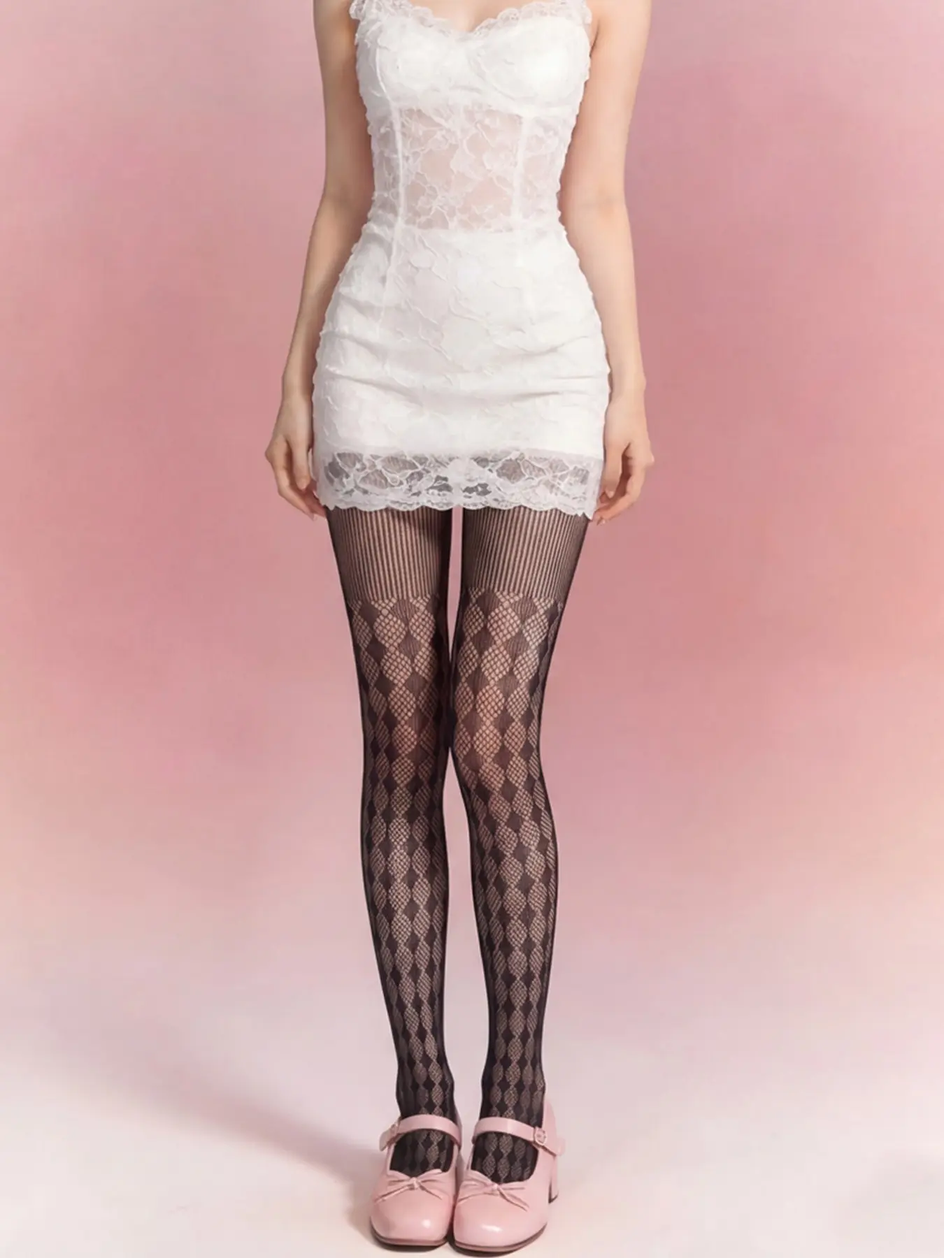 Women's Tight Control Top Leggings, and Rhombus Fishnet Socks, Sexy Ultra-Thin Mesh Stockings, Daily Wear, Date